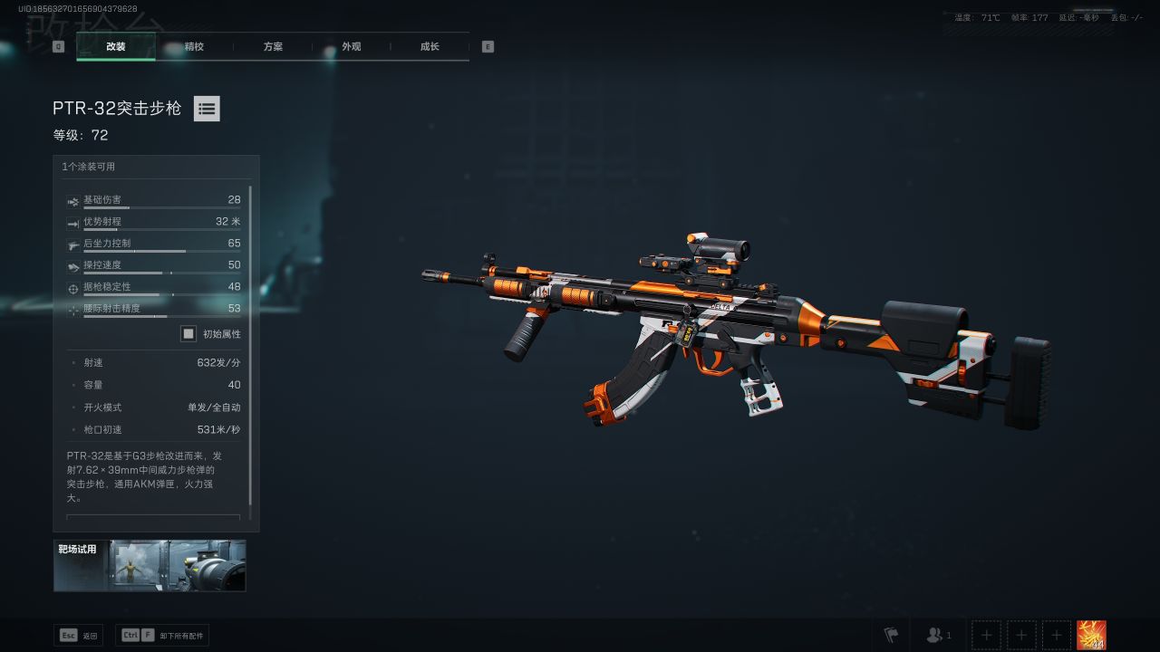 ptr32在我之前的文章中就已經提過了,不過更新前只能算是ak的平替,但更新後ptr可以看成一把更穩定且上限更高的ak,在目前這個主流武器都被大砍了開火穩定性的版本,ptr出乎意料的好用。優點是爆頭傷害高,賭到兩槍頭就是2btk,且彈道優秀,比較好壓,缺點則是四肢有衰減,可能打出5btk,如果感覺壓不住ak的話完全可以試一試,改裝方案如下