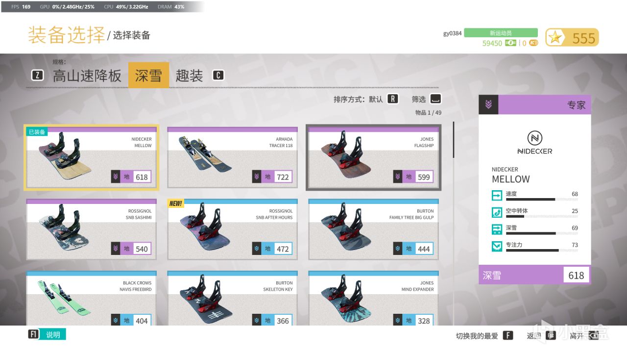 注意!注意!注意!这里要打开装备选择滑雪单板!