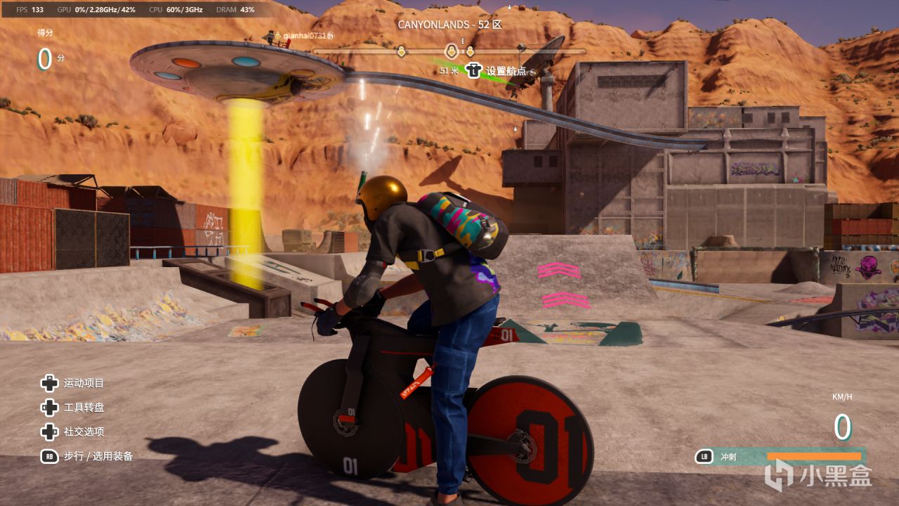 来到左边的UFO可以看到一束黄光,走到黄光处就可以直接传送到UFO上了。