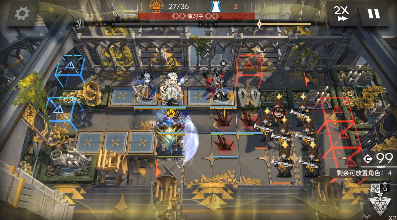 開局棘刺朝下,夜鶯朝右,等音樂變黃色開棘刺下面裝置。然後lgs朝左。等棘刺暖機後放維朝右,然後等音樂進入後面紫色的,點裝置變成黃色。最後怪來的時候開維神技能即可露頭就秒……不用她其實也能過。