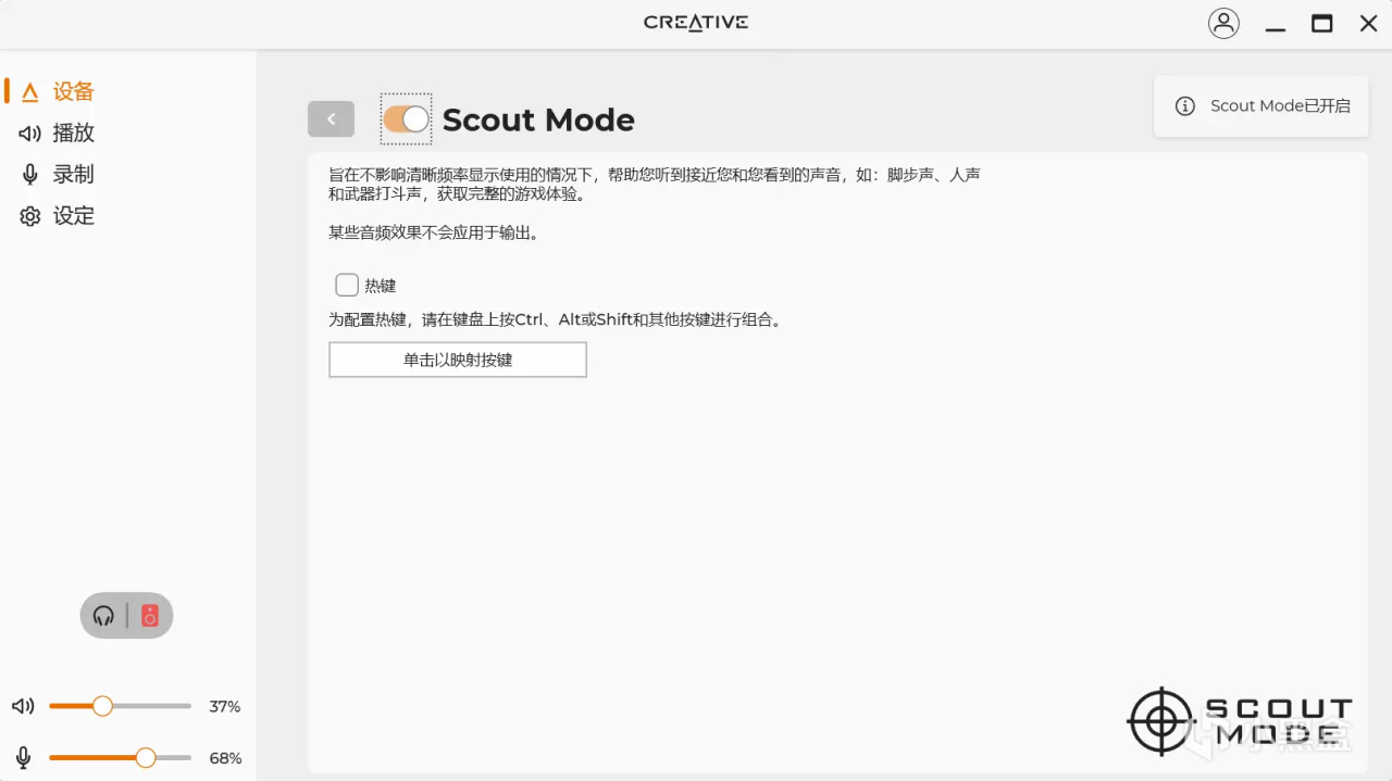 ▼SCOUT MODE(偵察模式)是創新的遊戲黑科技,它通過算法分析遊戲環境,並特別強化低頻的解析力和強度,以突出關鍵音效,使玩家能夠通過聽覺而非僅憑視覺來定位敵人。這個功能特別適合 FPS 射擊遊戲,它不僅能幫助玩家更快地發現對手,還能使戰鬥中的爆炸聲、裝備撞擊聲和腳步聲變得更加清晰和細緻,從而極大地增強遊戲的沉浸感。
