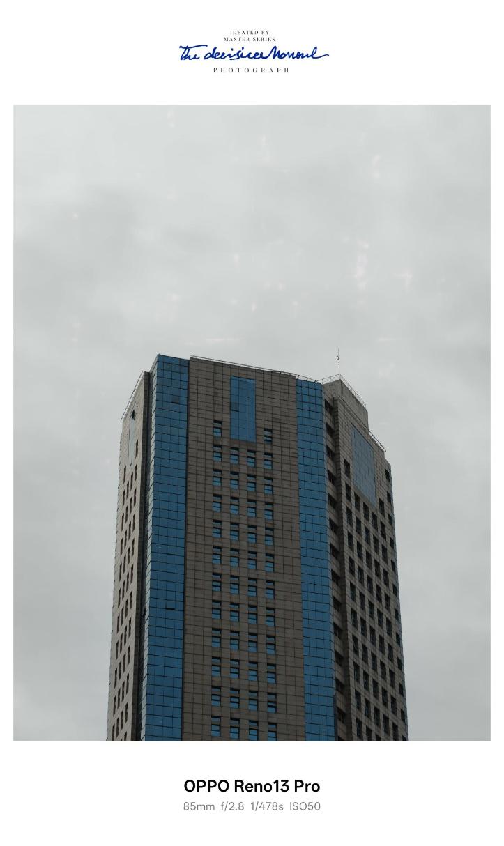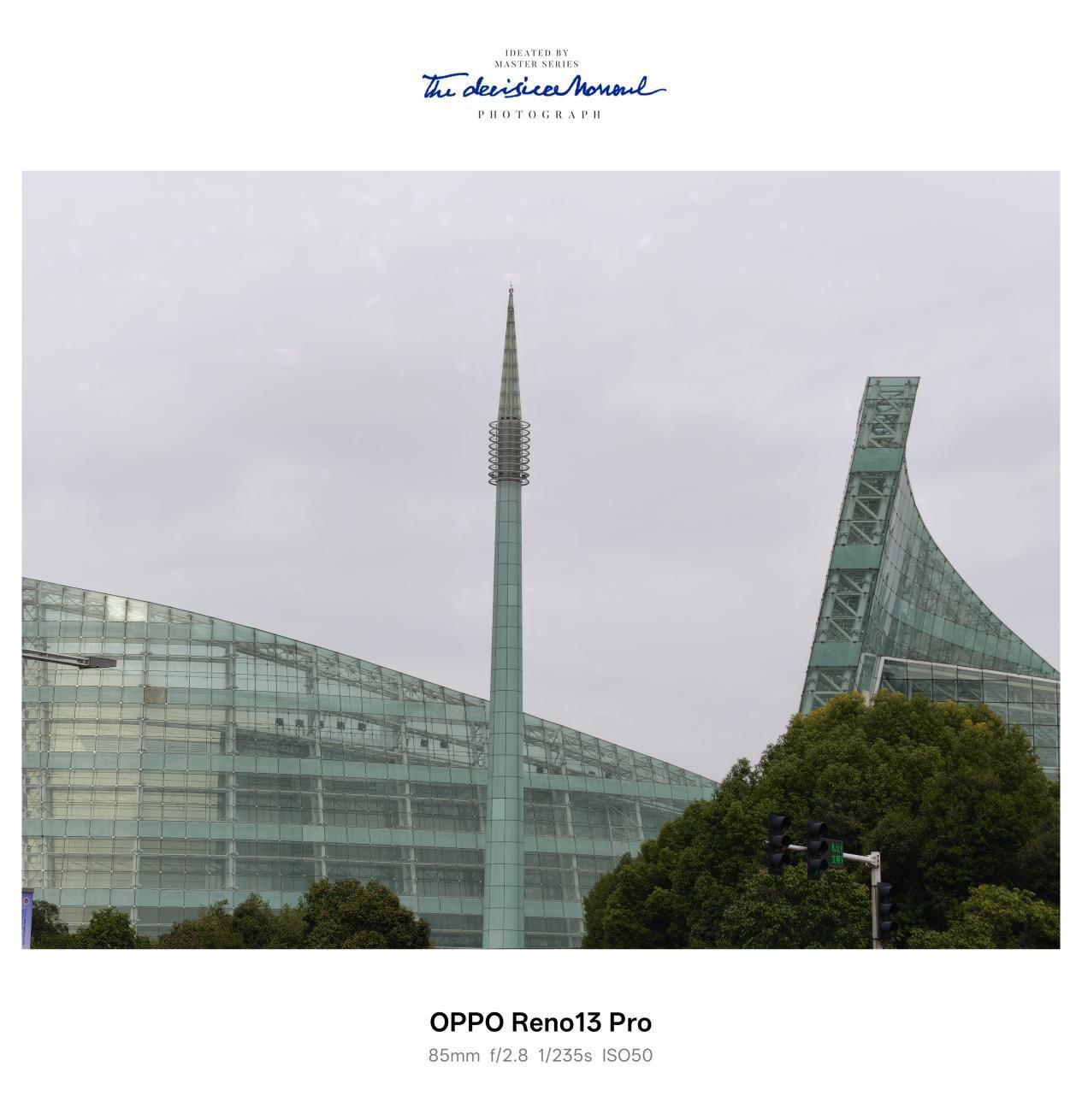 在户外光线较好的环境下,使用Reno13 Pro拍摄城景时,长焦镜头出现了一些小问题,天空会出现莫名的光斑,如果将其更换为主摄,天空则表现为正常。