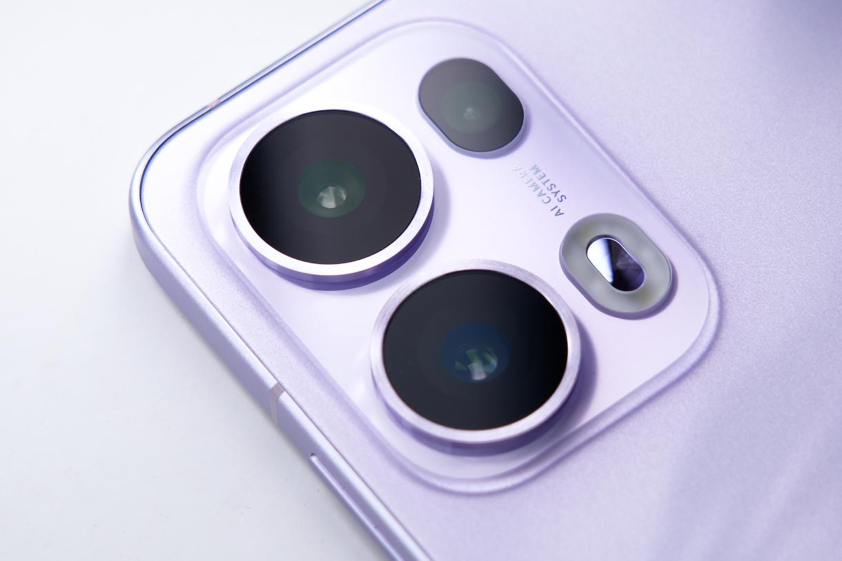 影像作为Reno13 Pro的核心卖点之一,其采用后置三摄方案:5000万像素主摄(1/1.56英寸,光圈f/1.8,支持OIS光学防抖,等效焦距24mm,6P镜头)+5000万像素长焦(1/2.75英寸,光圈f/2,支持AF和3.5X光学变焦,等效焦距85mm,1G3P)+800万像素超广角(1/4英寸,光圈f/2.2,等效焦距15mm,FOV 116°,支持AF,5P镜头)。