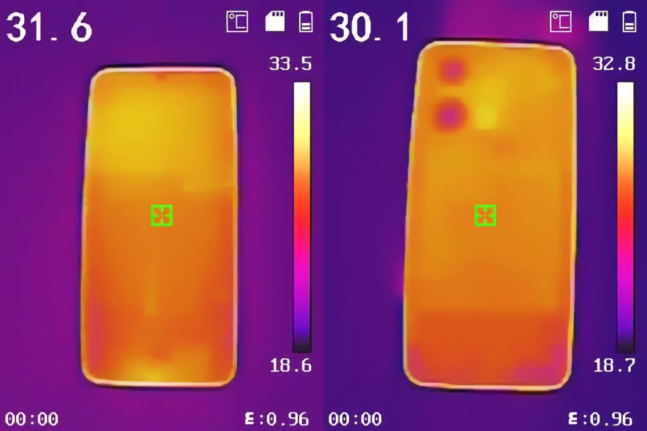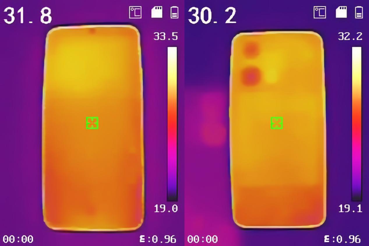 机身温度控制得相当优秀,正面最高温度只有33.5℃,背面最高温度为32.8℃。