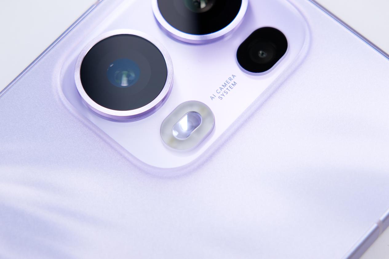 与上代不同,Reno 13 Pro后置镜头模组进行了重新设计,矩阵模块中两颗竖向排列的摄像头,给人一种iPhone 16既视感,右侧上方为椭圆形摄像头,下方为宝石形状闪光灯的对称设计,彰显出了Reno13 Pro科技与时尚相互碰撞的美学风格。