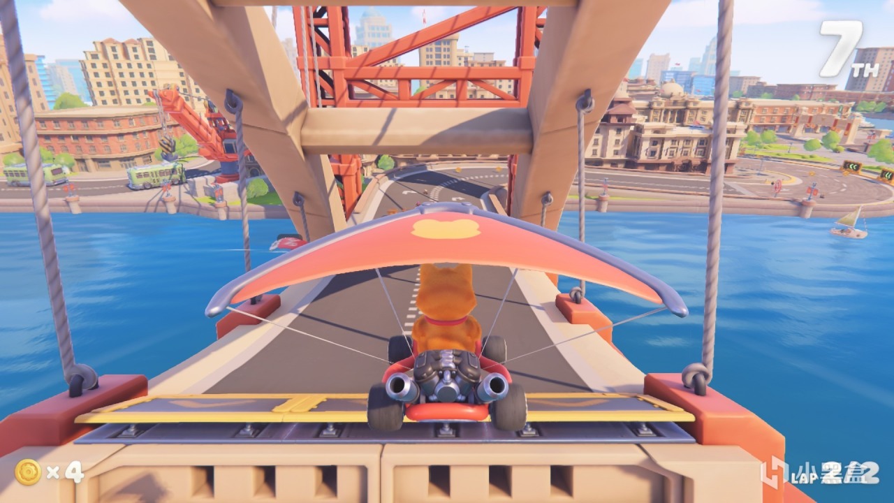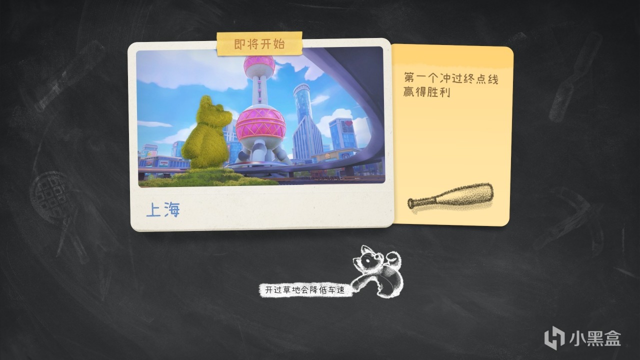 “猛獸卡丁車”的諸多設計也依照了《猛獸派對》一如既往的風格,以各種詼諧搞笑的小道具以及與之相對應的攻擊方式來進一步強化遊戲的樂趣。而賽道內玩家可以使用的道具種類也算得上相當多樣化,經典的香蕉皮與加速道具不必多提,能夠往其他玩家頭上糊粑粑以及用相當賽博朋克的方式把玩家“黑”出馬賽克的道具還是相當新奇有趣的。