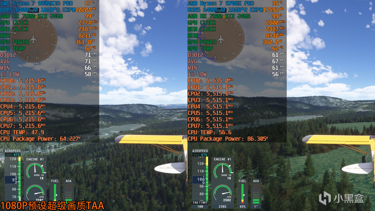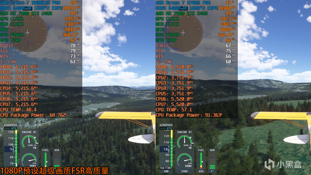 1080P预设超级画质FSR高质量,平均帧9800X3D比9700X提升24%