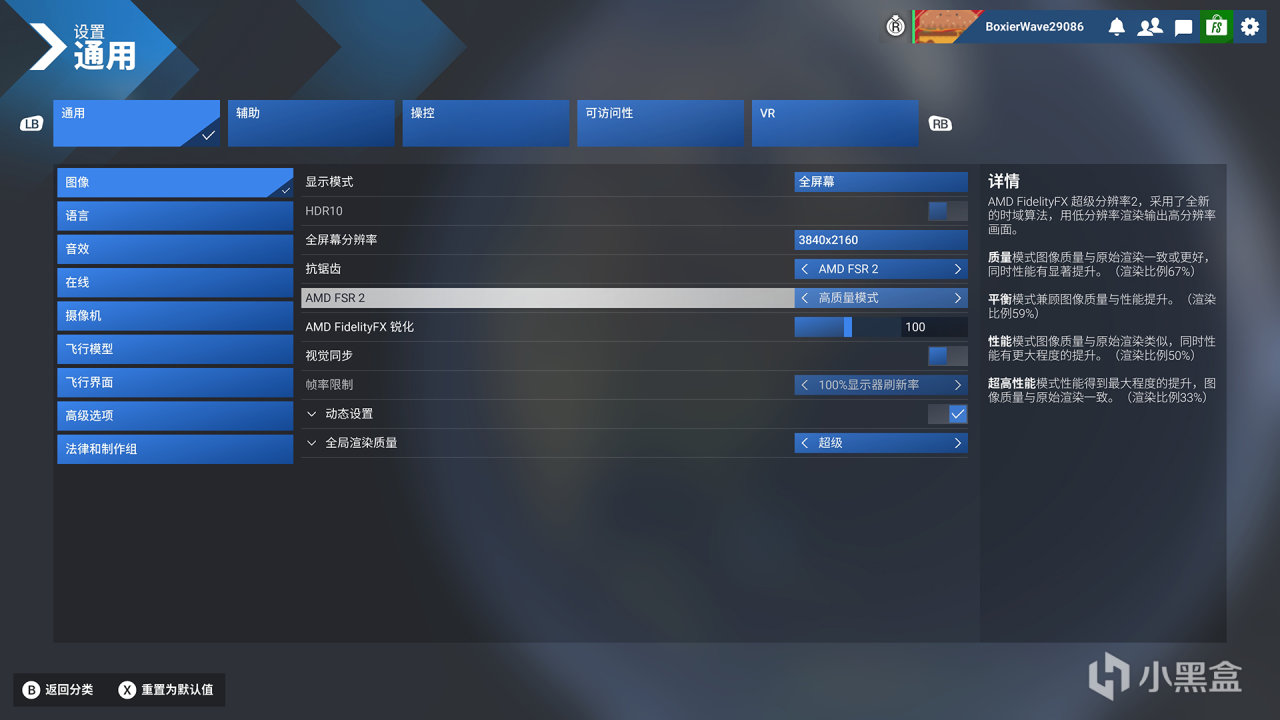 《微软模拟飞行2024》采用法国工作室Asobo Studio自家引擎,这次更新不单止地图更精细,物理计算更复杂,而且还引入了先进的人工智能NPC。先来看看图像选项,游戏抗锯齿就分为简单三种:TAA、AMD FSR 2以及NVIDIA DLSS,而AMD FSR 2又分为质量、平衡、性能以及超高性能四种模式,暂时不支持帧生成技术。