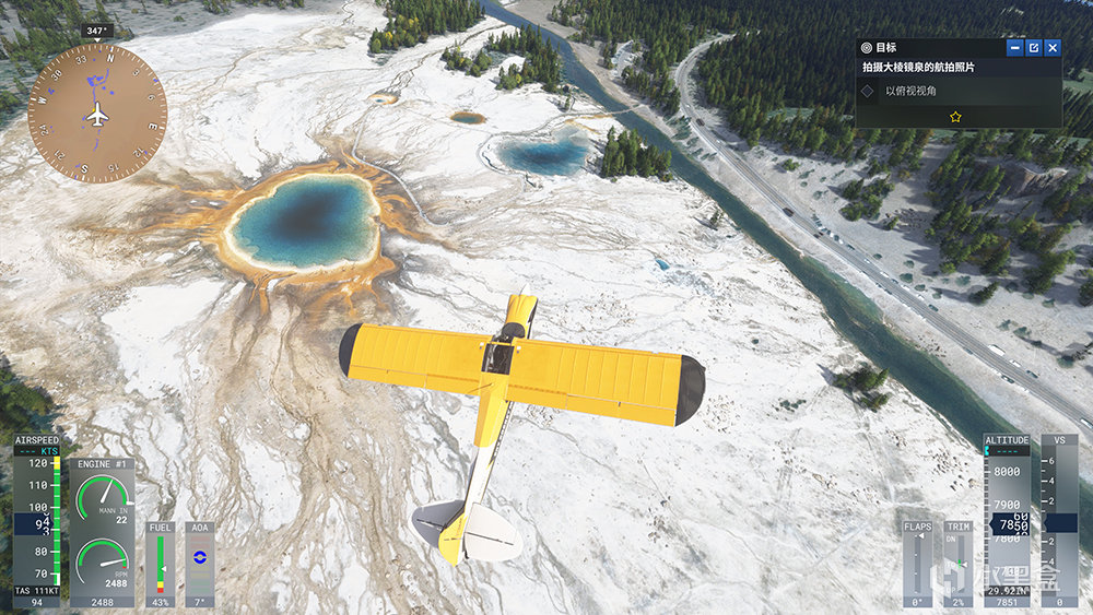 就拿黄石公园这个大凌镜泉来说,从空中来看还原度已经很高了,这款游戏目前自然景观的精细度远远好于大城市内的建筑群,不过这可能是由于目前机能限制所导致的,别忘了画质调整中还有一个物体细节水平选项是不可上调数值的,毕竟城市场景涉及到元素就复杂得多,另外就是一些不知名的区域可能还原度就不高了,千万别抱着飞到你家门口小区去看看的想法。