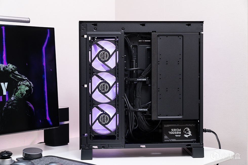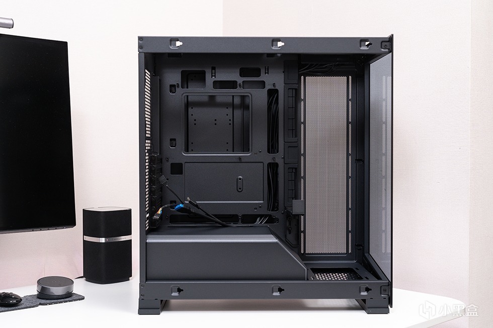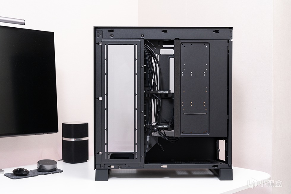機箱背面,理線空間十分充裕,搭配理線孔、魔術貼以及理線蓋板,最大化保證內部的整潔清爽。