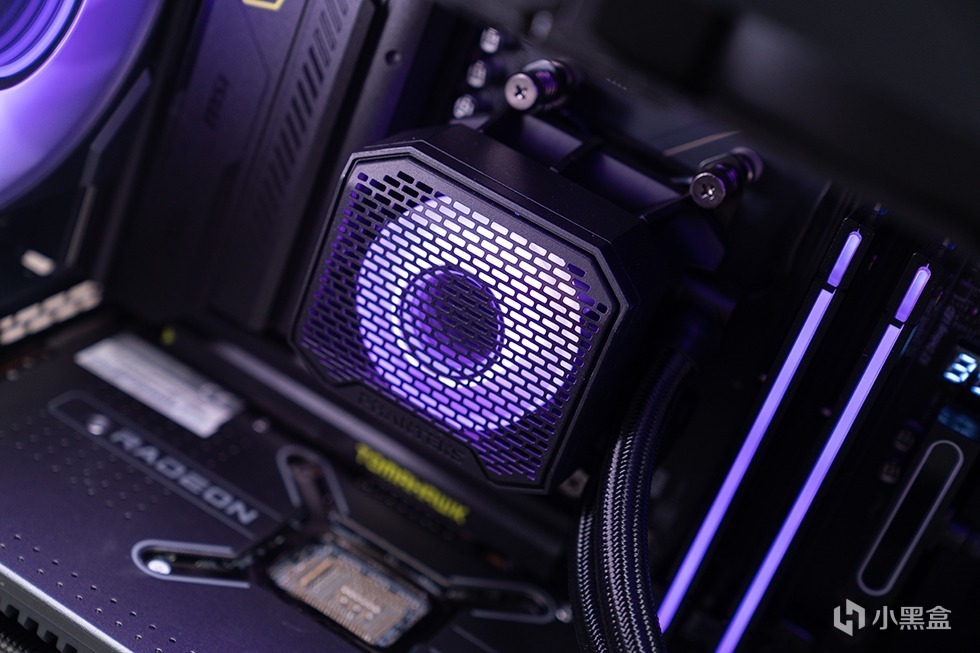 追風者 M25黑旋風360 一體水冷獨特的冷頭設計,外部配備高導流防塵風扇蓋,內置60 mm PWM 無限鏡ARGB風量扇,可同時爲 CPU、內存、主板 MOS 及 VRM 等組件散熱。搭配M25-120 G2風扇,應對9900X無任何問題。