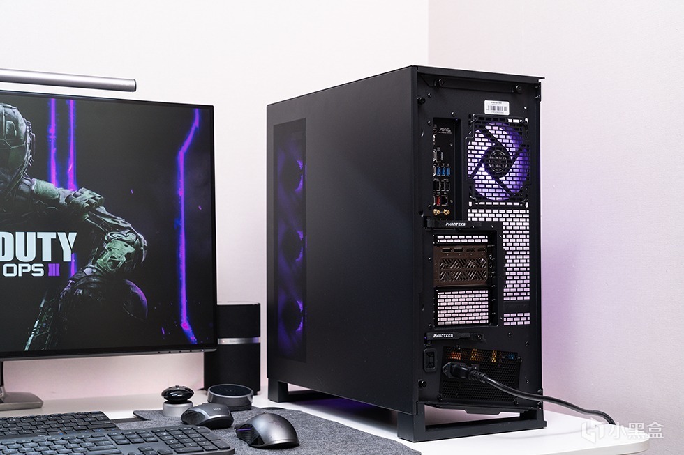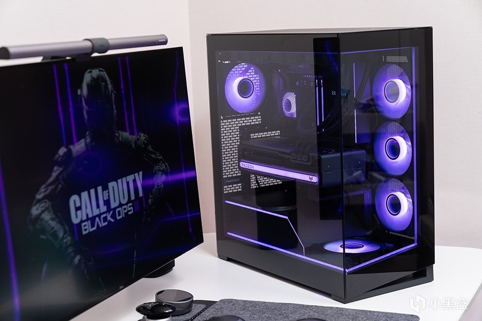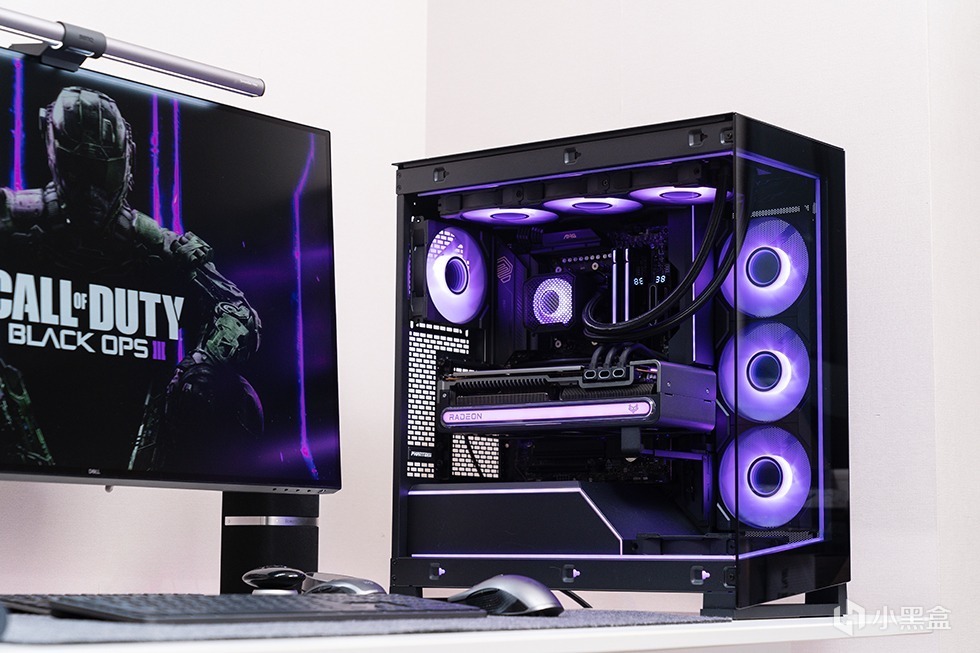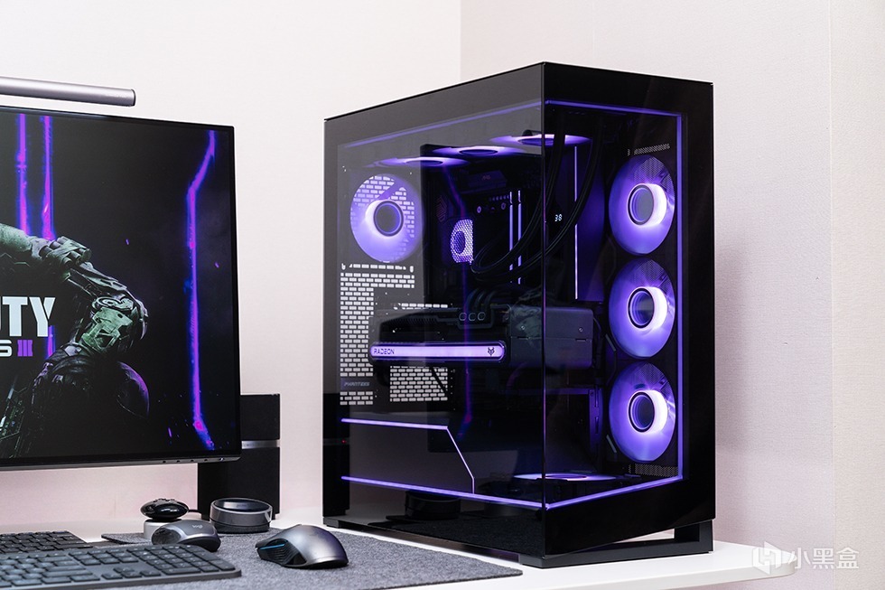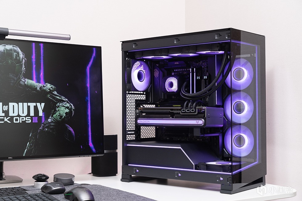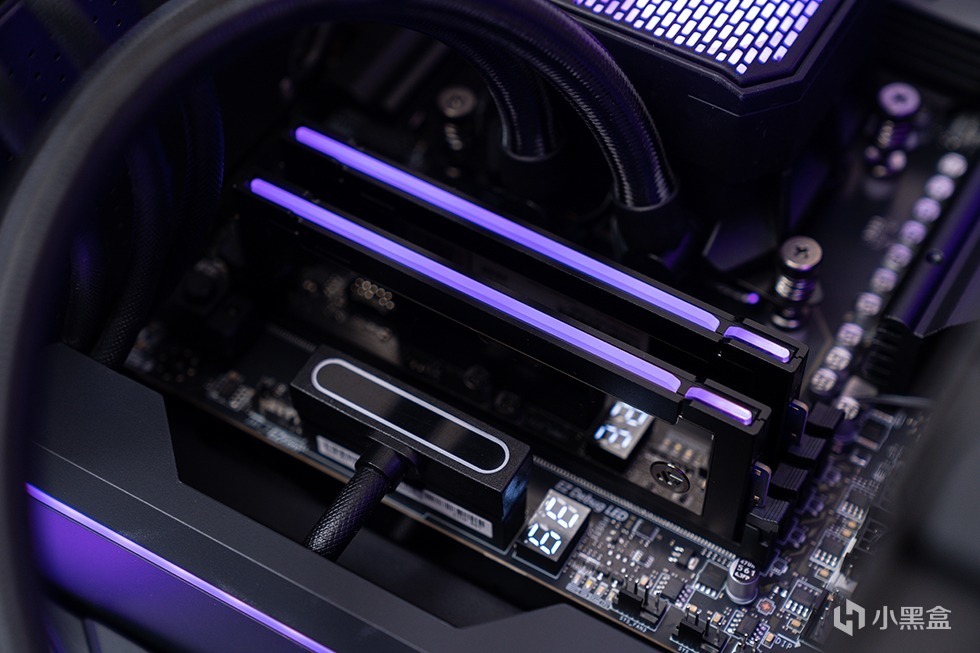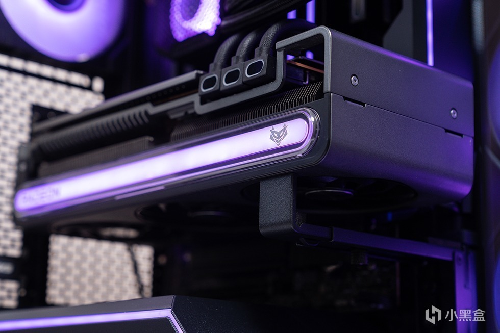 整機以追風者 NV5爲主框架,搭配機箱燈光套件以提升氛圍感。NV5側透無立柱的設計,可以很方便的展示燈光效果。個人不喜歡ARGB的花裏胡哨,所以機箱內所有燈光統一使用紫色燈效。