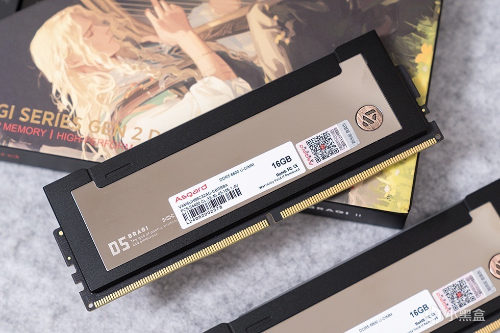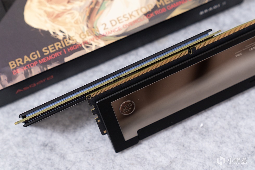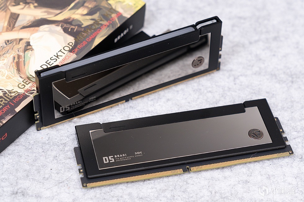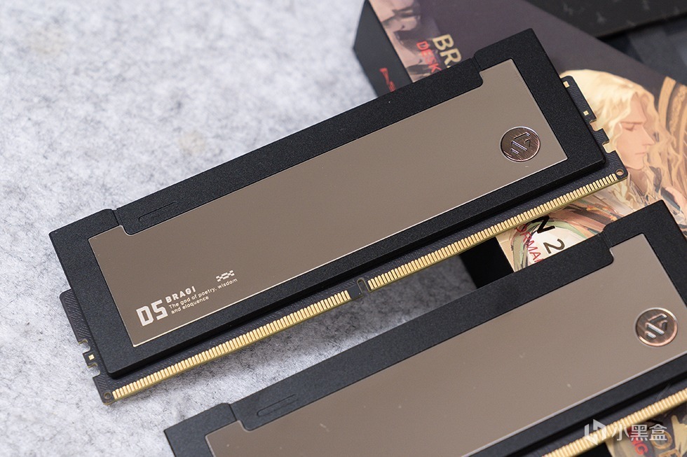 內存外觀線條設計利落,鏡面區域的左下角帶有蝕刻的“BRAGI The god of poetry wisdom and eloquence”的slogon,右下角帶有定製的圓形制式古銅色高亮銘牌,細節精緻。