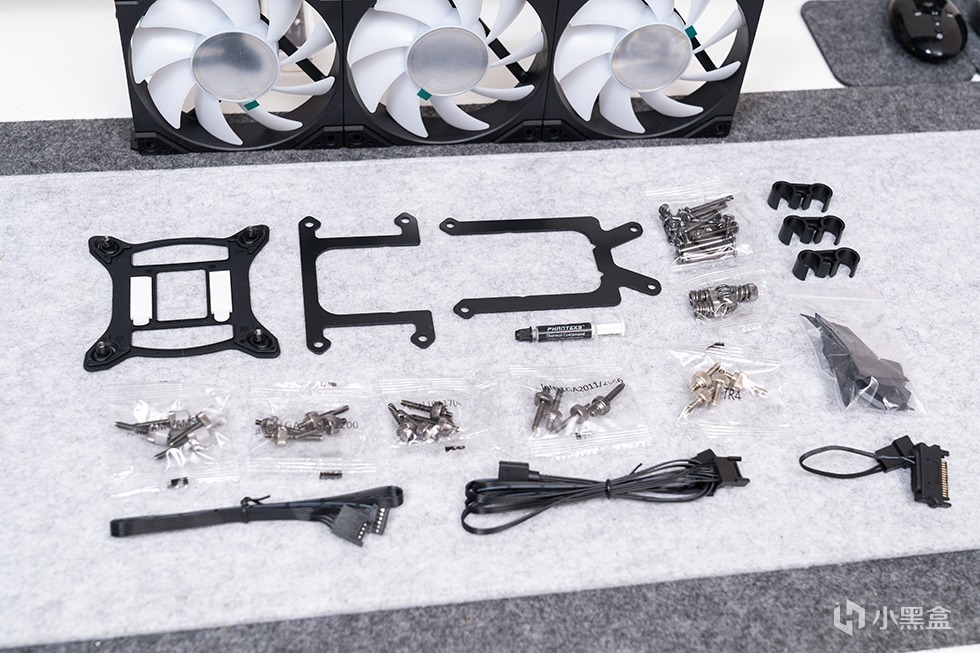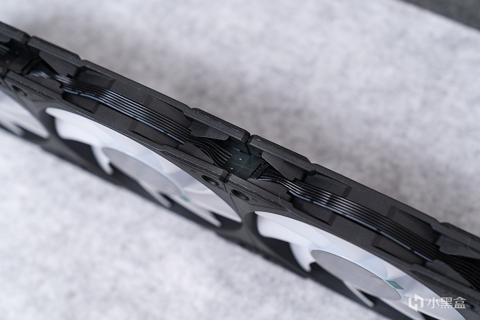機箱內部配套的風扇和水冷搭配的風扇均來自追風者二代積木風扇M25-120 G2,有黑白兩色,正反轉兩種規格。延續了M25風扇的大風量低噪音設計理念,通過Linq6線纜形成連貫拼接。