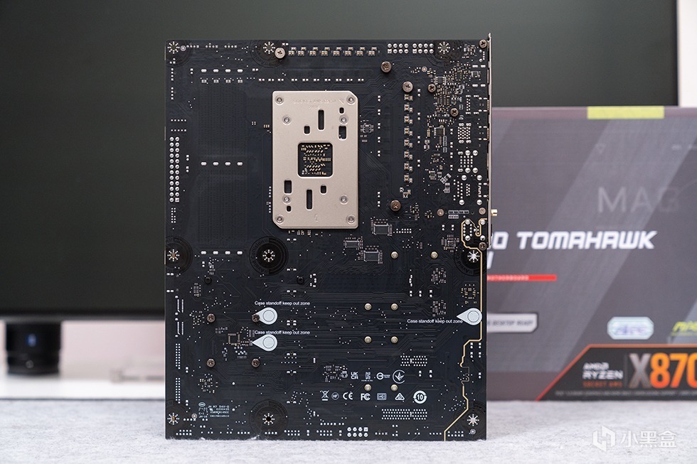 微星 MAG X870 TOMAHAWK WIFI 主板背面一覽,8層服務器級別PCB製程,2oz厚鍍銅,均採用雙倍ESD焊點,整體用料十分紮實。