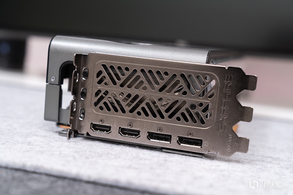 藍寶石RX 7900 XTX 24G超白金OC爲3.5槽厚度設計,輸出接口提供了HDMI 2.1*2+DP 2.1*2,其中DP 2.1最高可支持8K@165HZ和4K@480HZ。