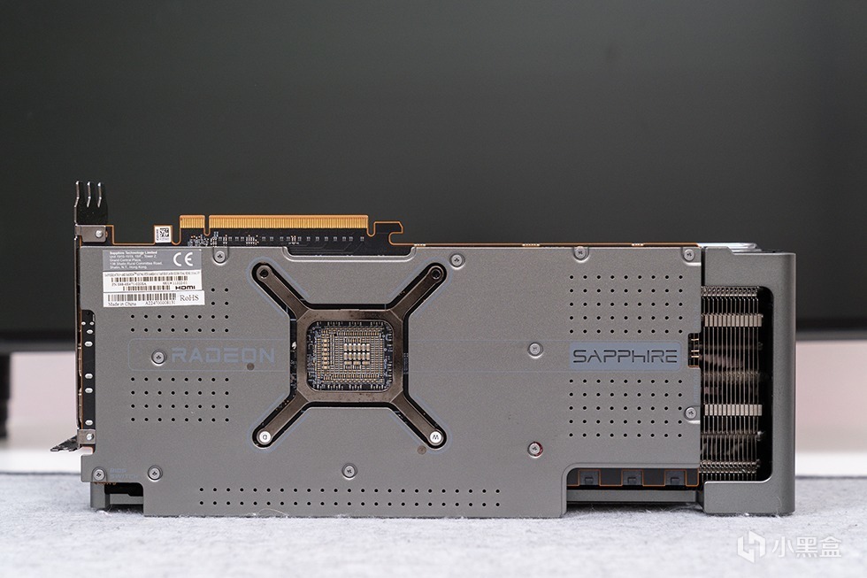 藍寶石RX 7900 XTX 24G超白金OC 顯卡配備了全鋁金屬背板,背板四周排佈散熱孔,SAPPHRE LOGO採用了鏤空工藝,內部有ARGB燈效透出。