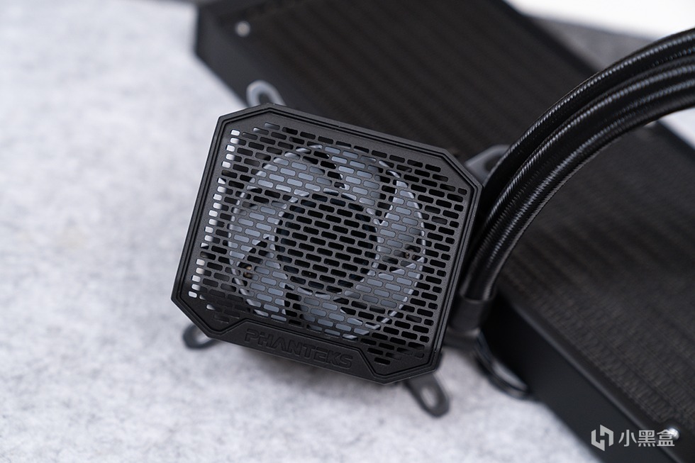追風者 M25黑旋風360 一體水冷獨特的冷頭設計,外部配備高導流防塵風扇蓋,內置60 mm PWM 無限鏡ARGB風量扇,可同時爲 CPU、內存、主板 MOS 及 VRM 等組件散熱。搭配高導流低噪水泵,轉速:3100PRM±10%,噪音:20dBA。