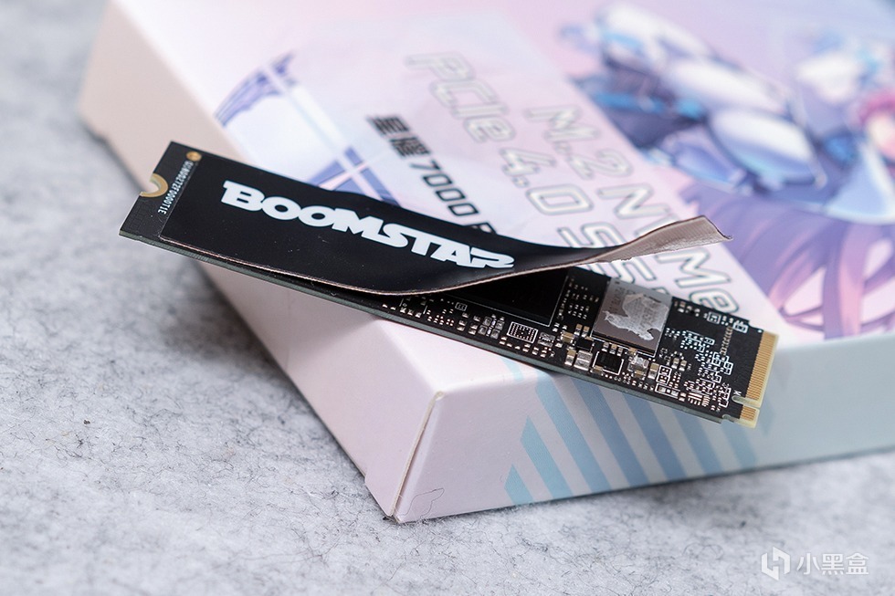 正面的定製散熱片採用了專屬高效複合材料,上面印有星曜系列的英文名“BOOMSTAR”,保持SSD快速散熱,高效運行。