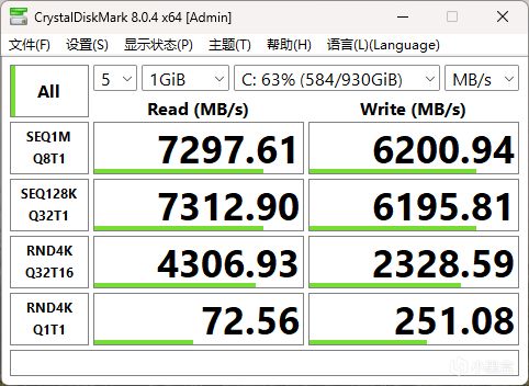 揭開體質可以看到,採用 Phison PS5027-E27T、PCIe 4.0 主控,支持第 4 代 LDPC & RAID ECC 糾錯能力,以及 TRIM 指令和 S.M.A.R.T 自我檢測分析報告技術。支持的最高讀取速度爲7400 MB/s,最高寫入速度爲6400 MB/s。閃存NAND顆粒則是自封形式的,標註型號爲T27HGA5A1V,官方標稱寫入壽命上限爲600TBW。