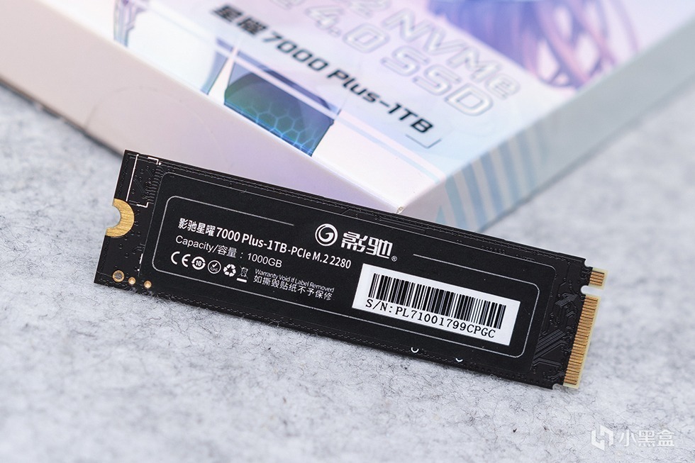 存儲方面選用了影馳 星曜 7000Plus 1TB,採用熟悉的星耀娘彩盒塗裝,右下角標明瞭產品的相關信息,支持PCIe 4.0,可向下兼容PCIe 3.0,官方稱其順序讀取可達7000 MB/s,順序寫入也能達到6000 MB/s。