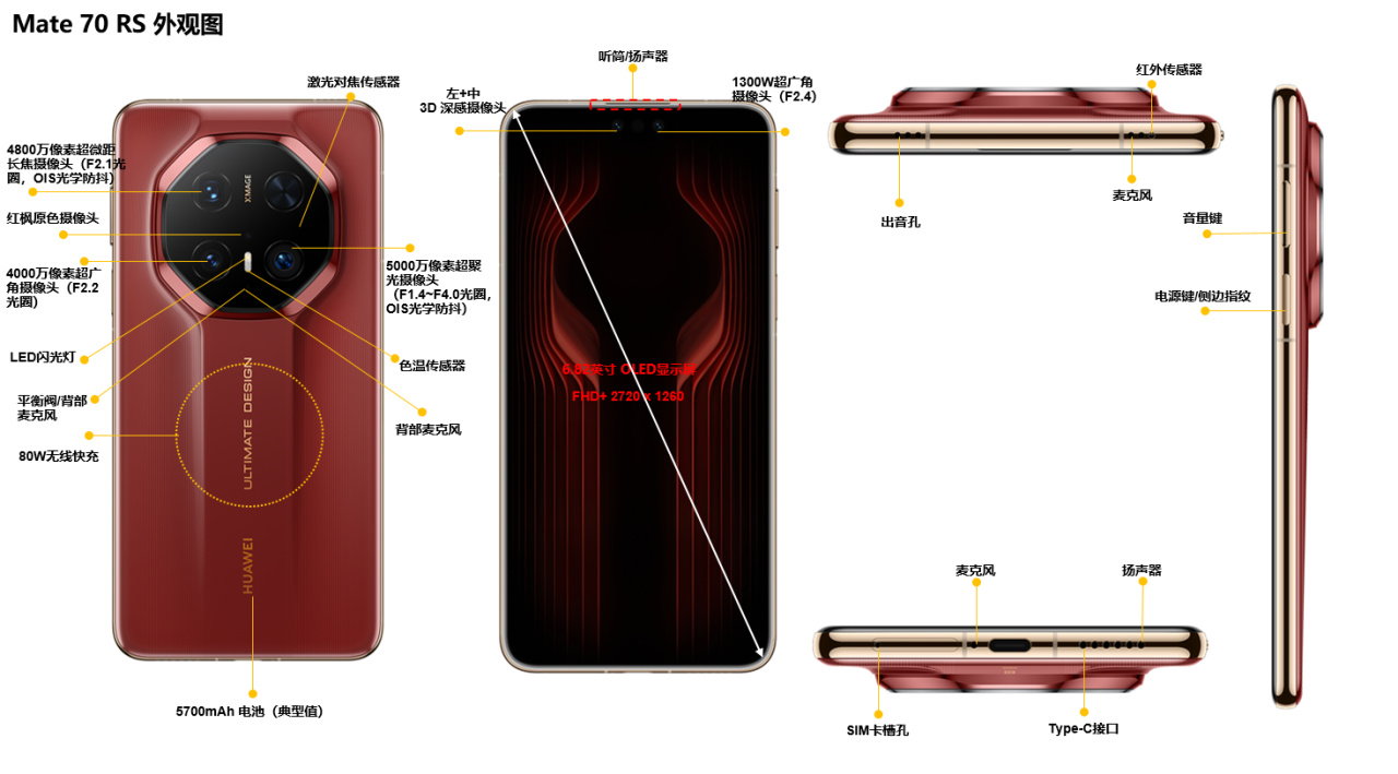 其他:雙揚聲器,雙頻GPS, USB3.1 Gen1,側邊指紋+3D人臉解鎖,紅外遙控,X軸線性馬達,IP68+IP69,支持UWB,天通衛星通信、北斗衛星消息;