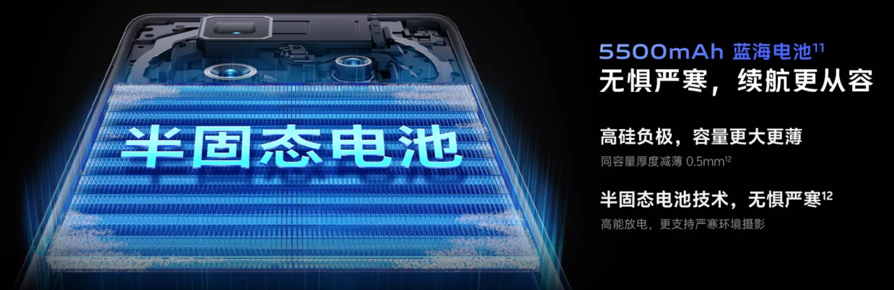 X100 Ultra高達5500毫安時的半固態電池,續航在三款機型中無疑是遙遙領先的,畢竟在續航方面,電池大就是硬道理。
