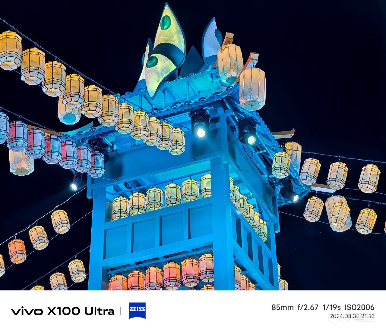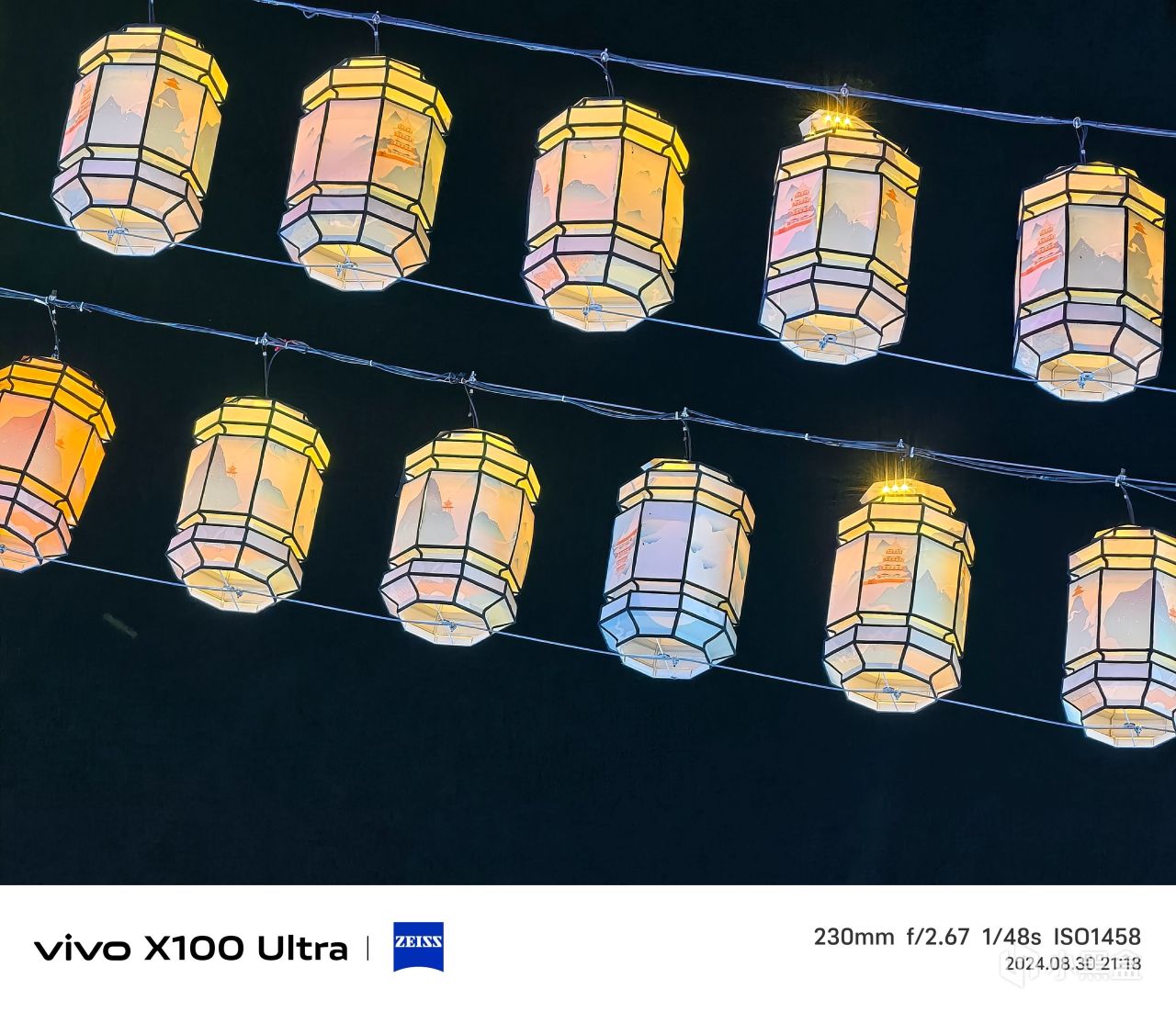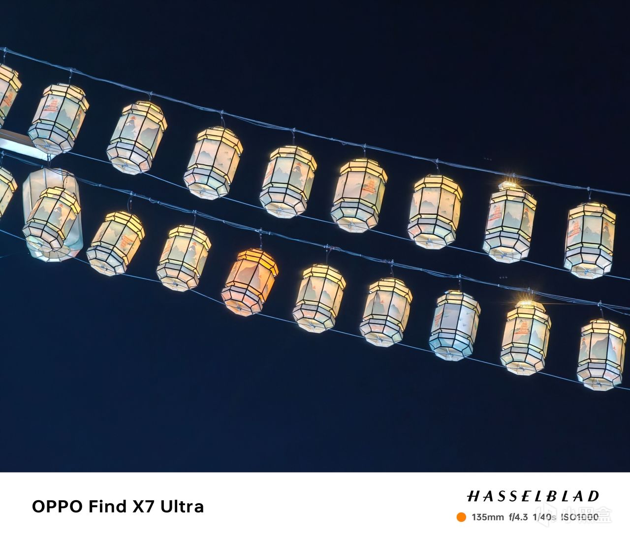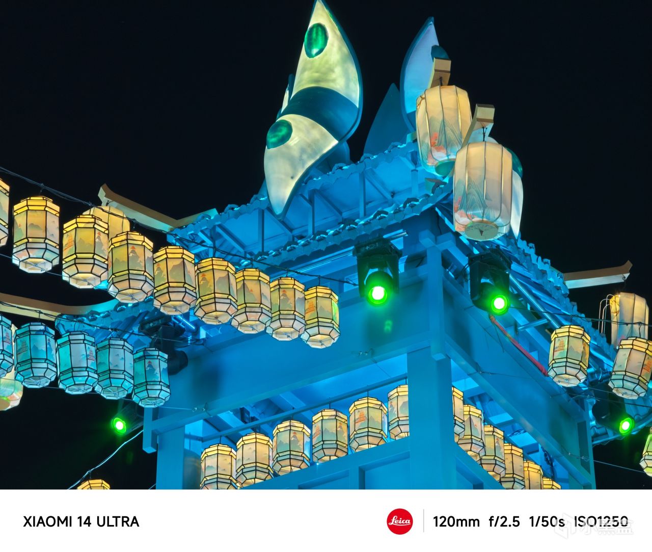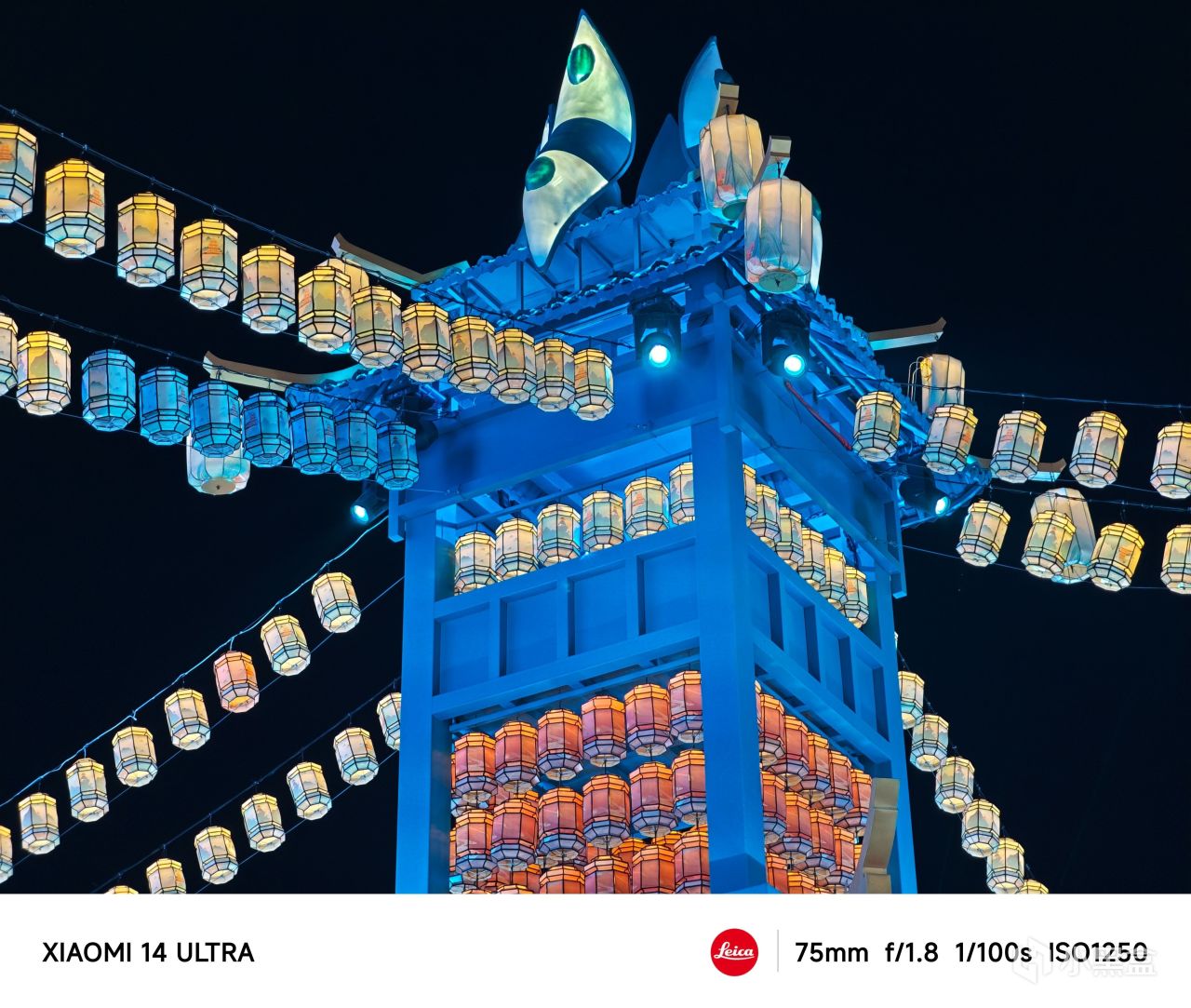 小米14 Ultra是中焦夜景75mm光學直出。細節還是很豐富,燈掛繩上的係扣也拍了出來。