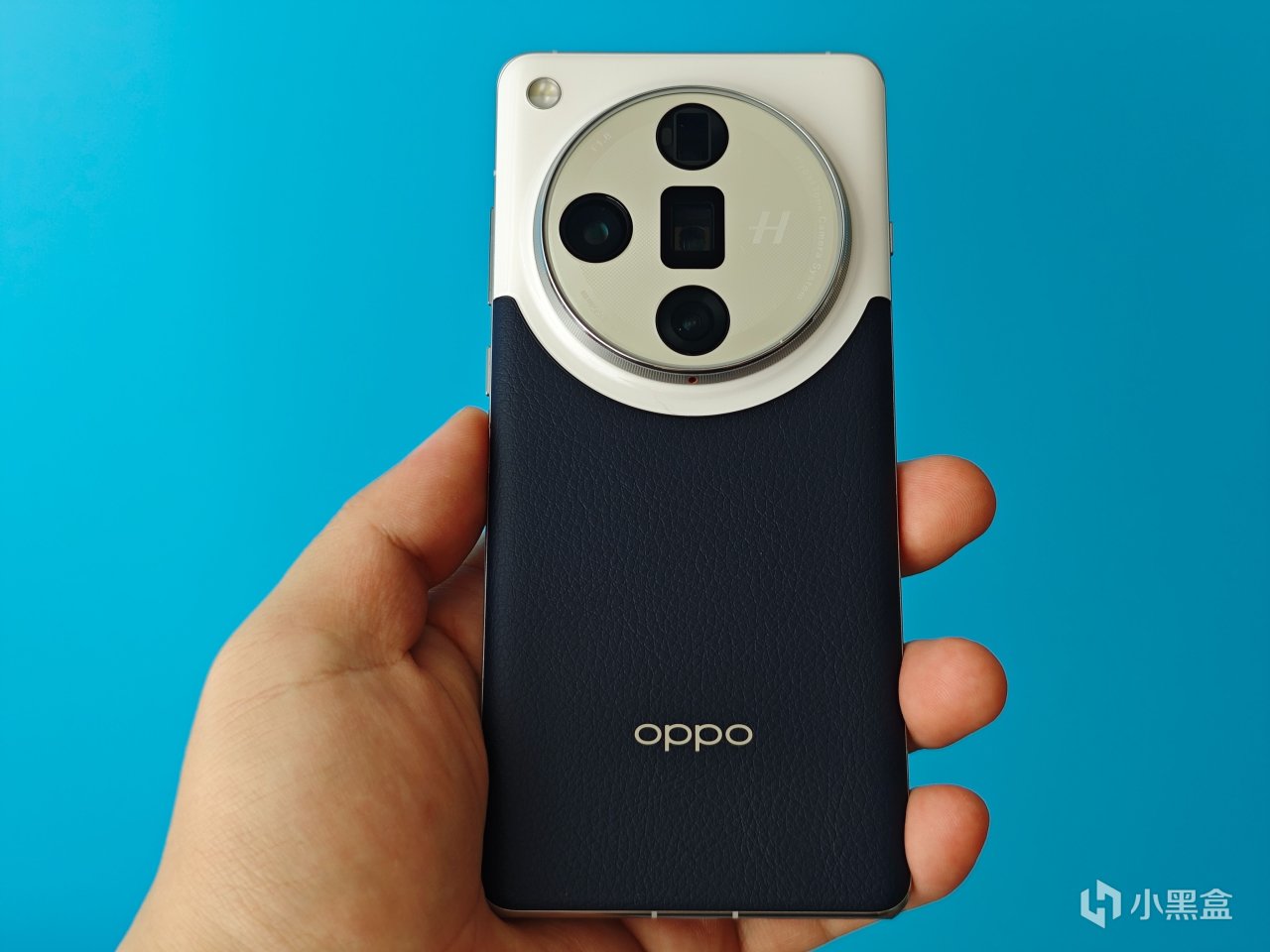 OPPO的後背採用了金屬和科納皮的拼色設計,真的是科納皮,不是素皮,手感上和14 Ultra一樣,很柔和,親膚。