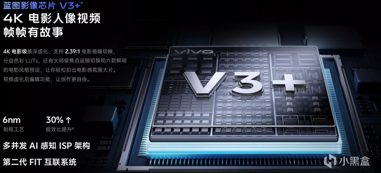 VIVO X100 Ultra還有一顆獨立的V3+影像芯片,採用了6NM工藝製程,輔助成像。