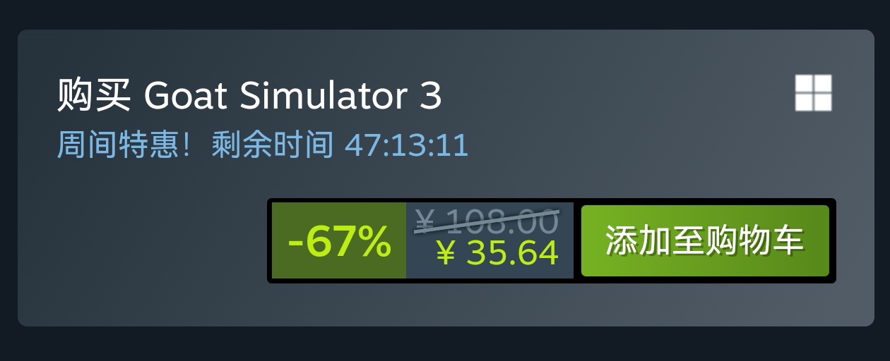 今天凌晨两点,Steam开启了周间特惠,其中,《模拟山羊3》迎来了新史低,这是一款欢乐沙雕的游戏,相信有些人玩过《模拟山羊1》的肯定对这个系列的游戏不陌生,而且在《模拟山羊3》中你还可以进行联机,当然了,有朋友一起沙雕才叫欢乐啊。