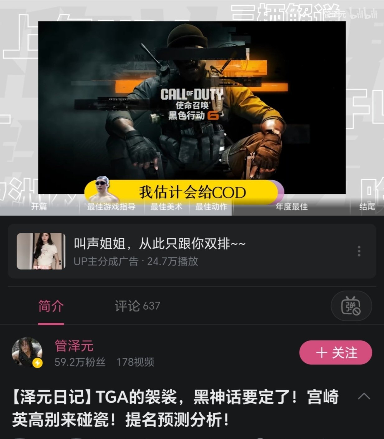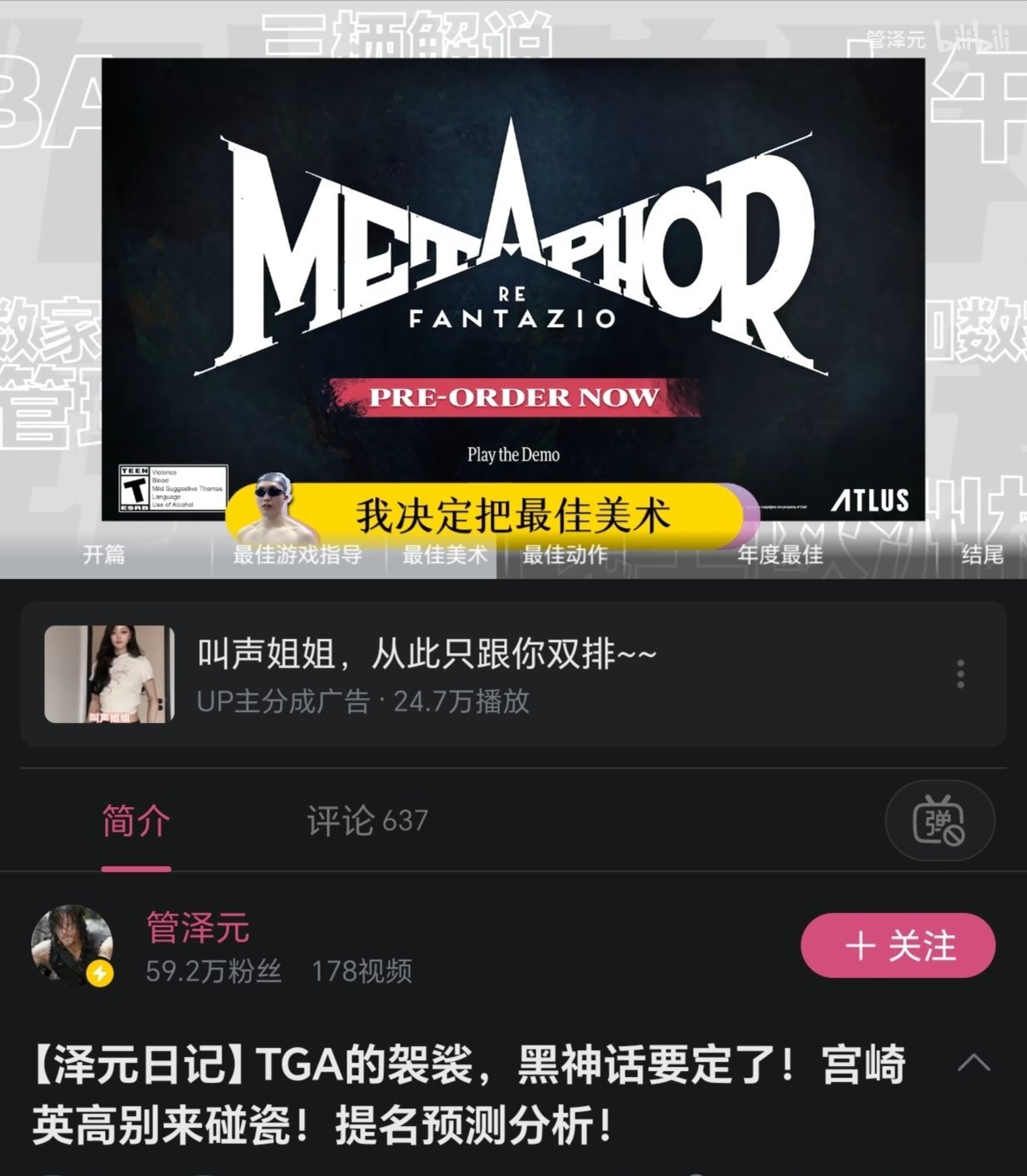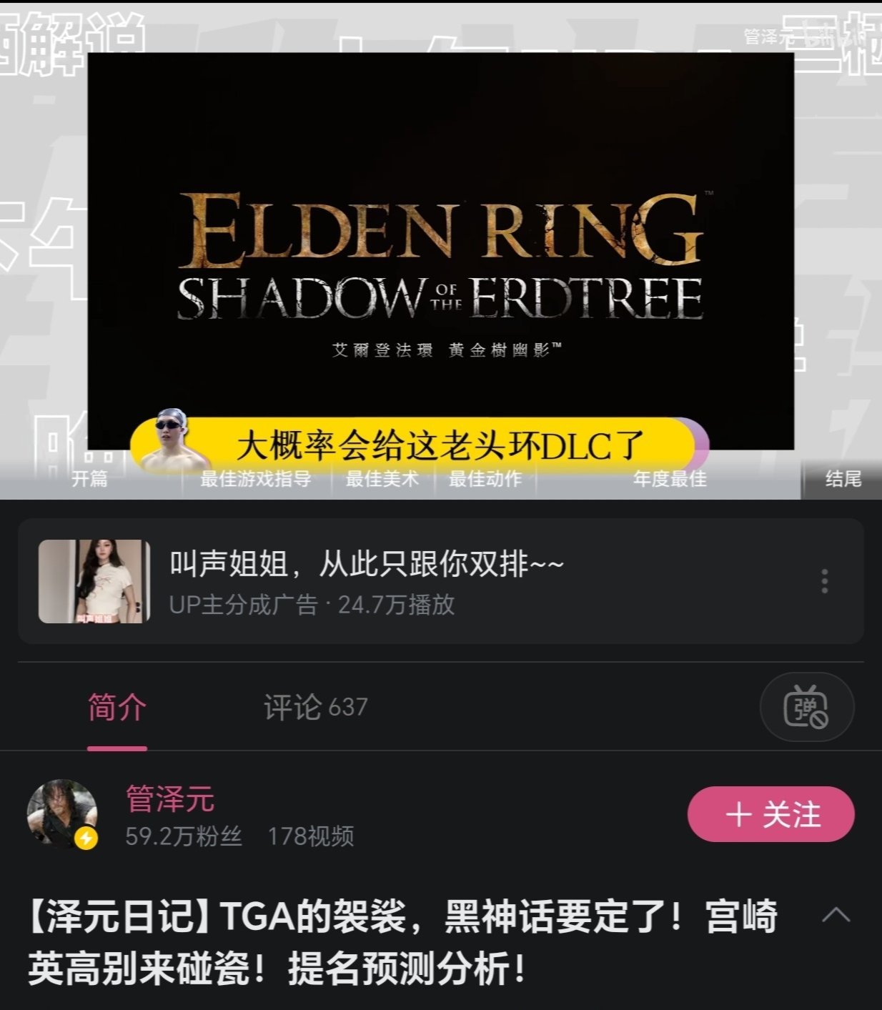 好,那麼結束了管澤元的背景介紹,回到本帖重點,管澤元在剛剛對TGA年度遊戲進行了預測,預測裏有黑猴提名的四個獎項。