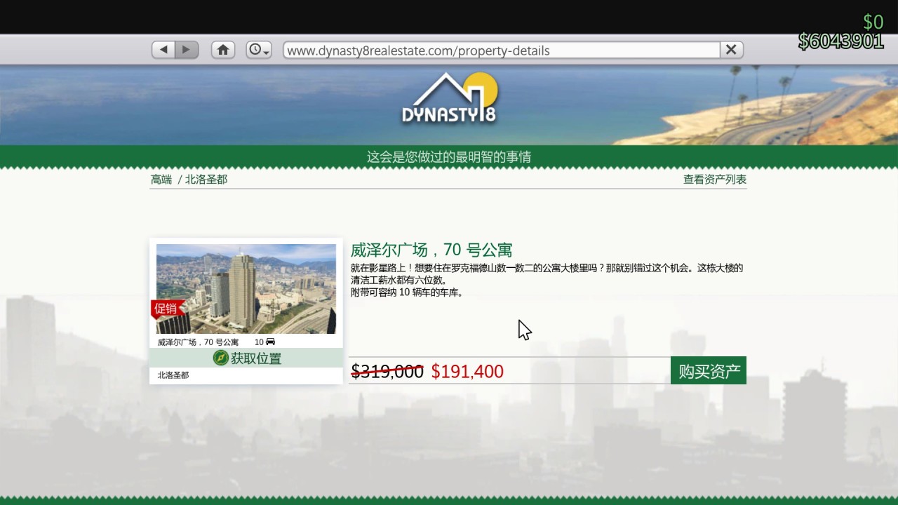 馬上進入遊戲,在公寓購買網站裏我還找了半天才找到這個威澤爾70號,這離海邊也不近啊,怎麼可能是海景房呢?吹牛唬人呢吧?剛好買了9個公寓還空了一個果斷購買下單,等着去打臉,結果一進公寓我被狠狠打臉了