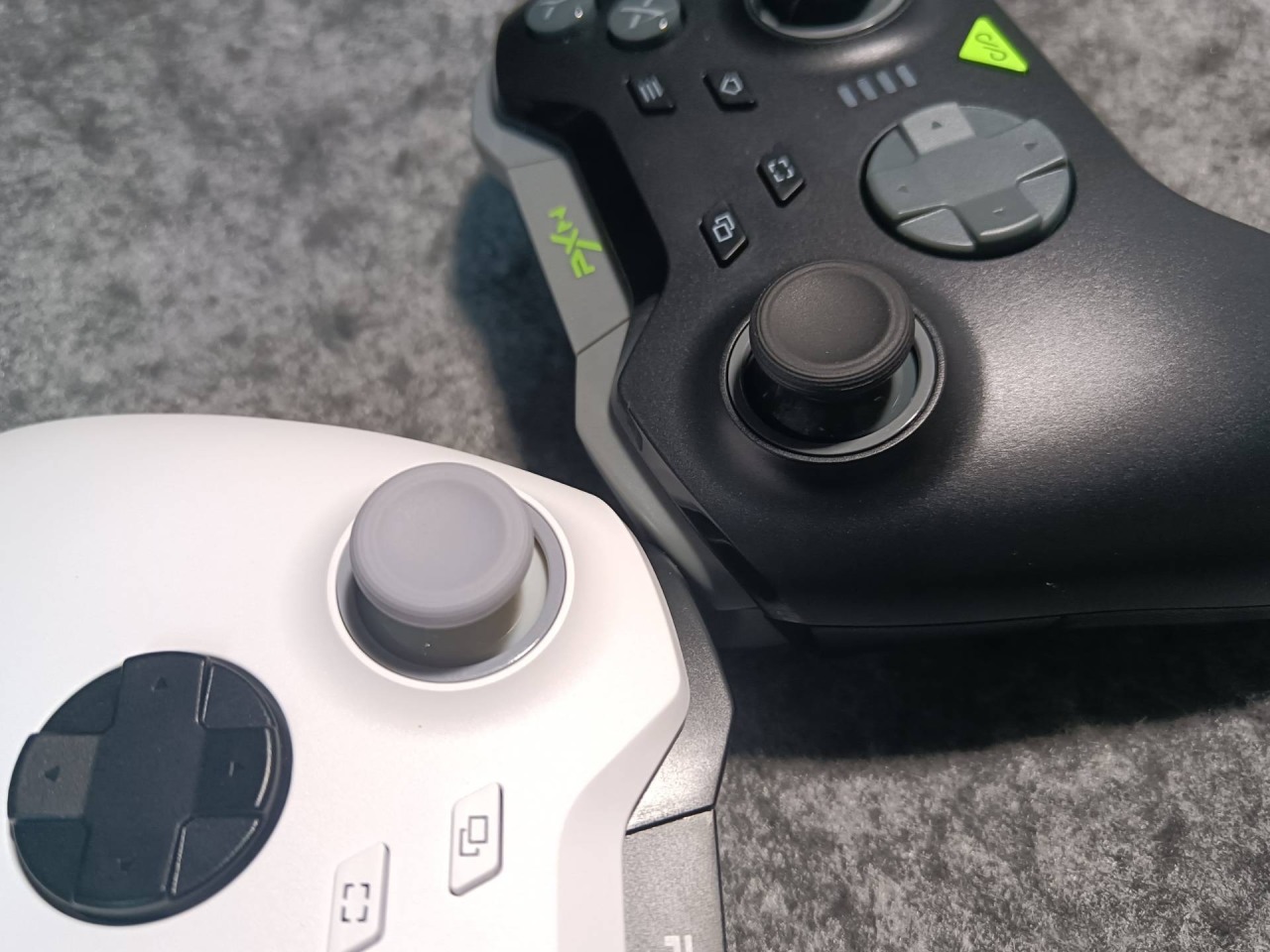 搖桿部分採用的是霍爾搖桿,用起來中心阻尼偏重,但是重的不多,在不影響實際手感的同時,回中做的也很不錯,外圈採用的是正圓形調教,搖桿外圈做了POM防磨環,用起來更耐磨也更順滑。