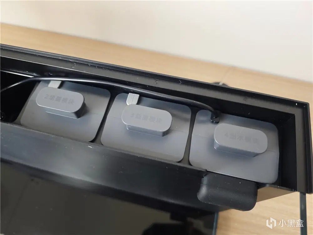 魚缸背濾中間部分,預留加熱棒、殺菌燈、蛋分預留倉,用戶可以根據自己家環境選擇添加加熱棒,魚缸支持DIY拓展塢功能,拓展塢接口從上往下分別爲:Type-C接口。兩個預留接口、兩個水泵接口。接口採用插針式密封接口,使用中安全。預留接口可以接殺菌燈、蛋分、增氧泵、射燈等設備,通過智能拓展塢可實現手機端遠程控制