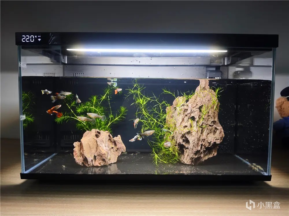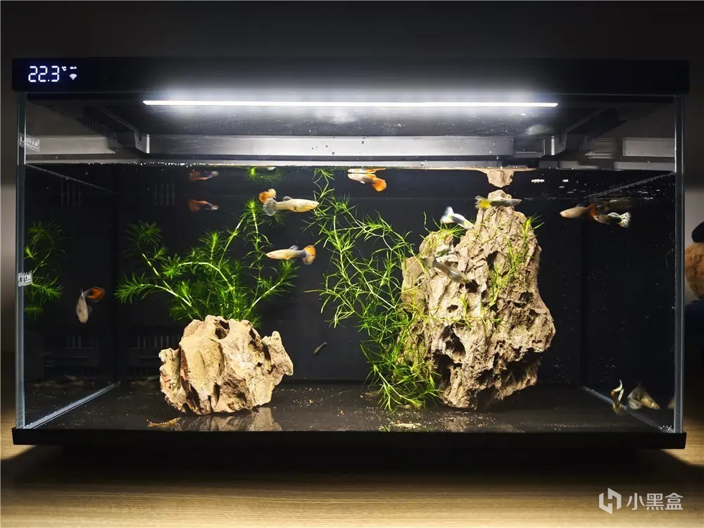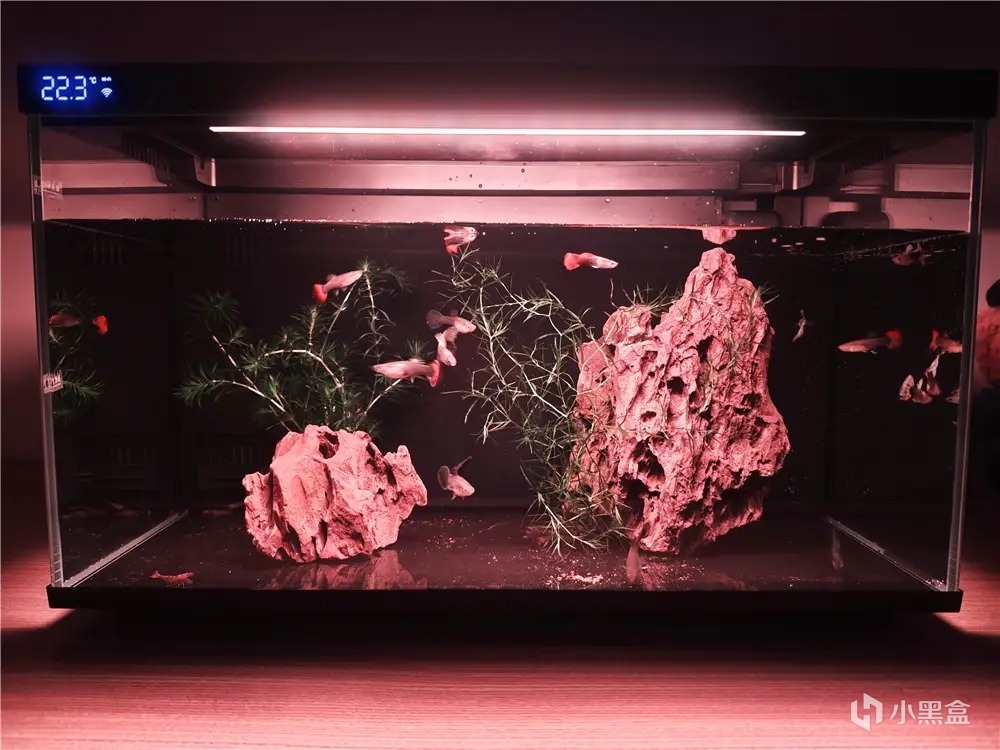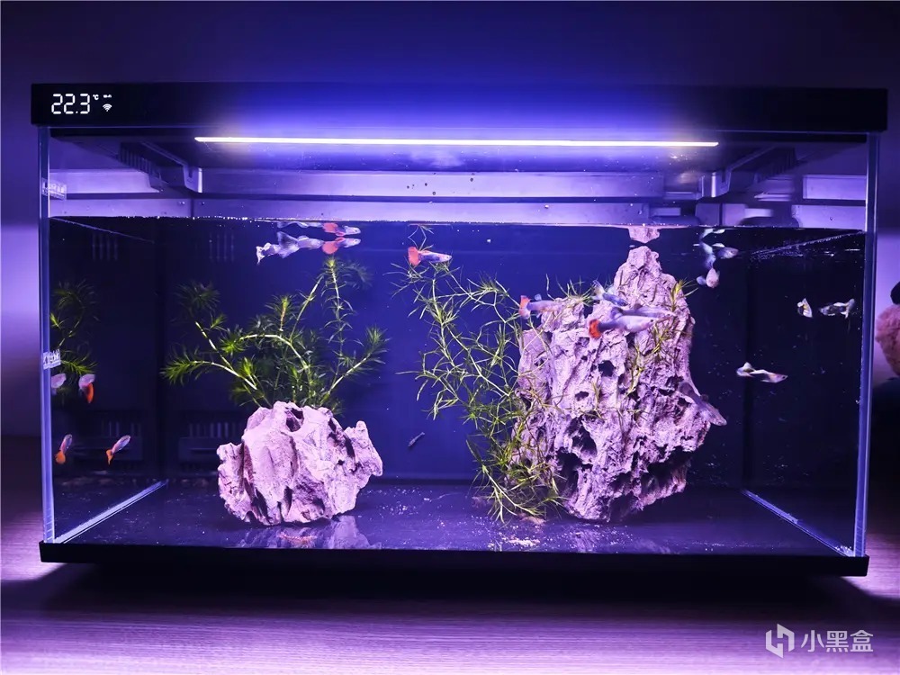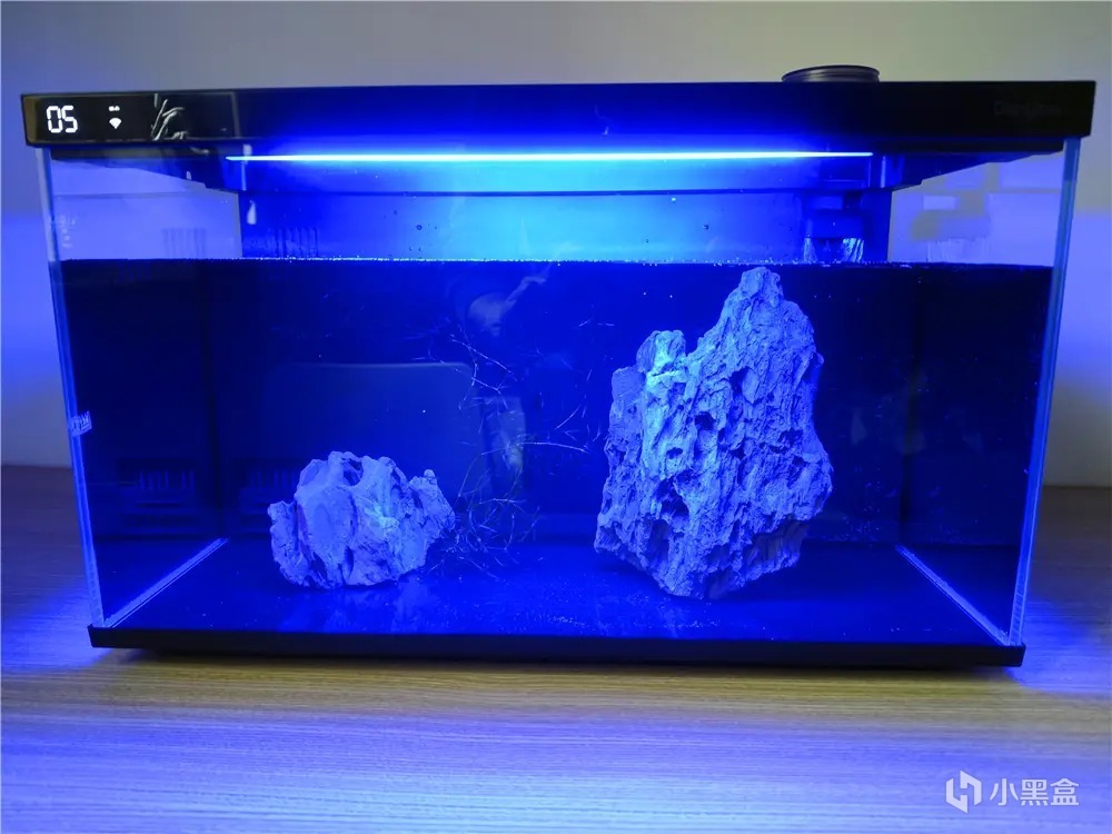 這款集水泵、燈光、餵食器、缸體、過濾系統以及水溫檢測等核心部件於一體,實現高度集成化設計。開箱即可使用,無需繁瑣的配置和調試,極大地提升養魚的便捷性。對於養魚新手來說,魚缸有最低水位和最高水位分標示貼,根據自己做造景需求添加合適水位即可。添加的要不要困水,這個根據自己家裏水質情況,沒必要使用純淨水,如果自來水裏的氯氣很重,還是建議接水晾曬2天,再倒入魚缸。
