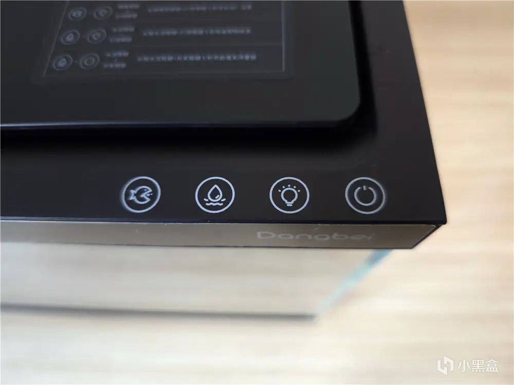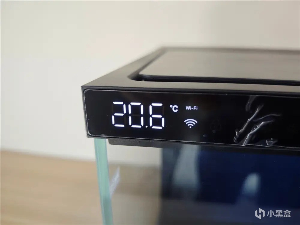 魚缸正面左上角邊框設有智能顯示屏,可以實時顯示魚缸內水溫實時溫度,WiFi連接狀態、童鎖、水質、過濾、培菌,用戶通過指示燈可以判斷魚缸狀態,一目瞭然,對養魚新手小白更貼心。