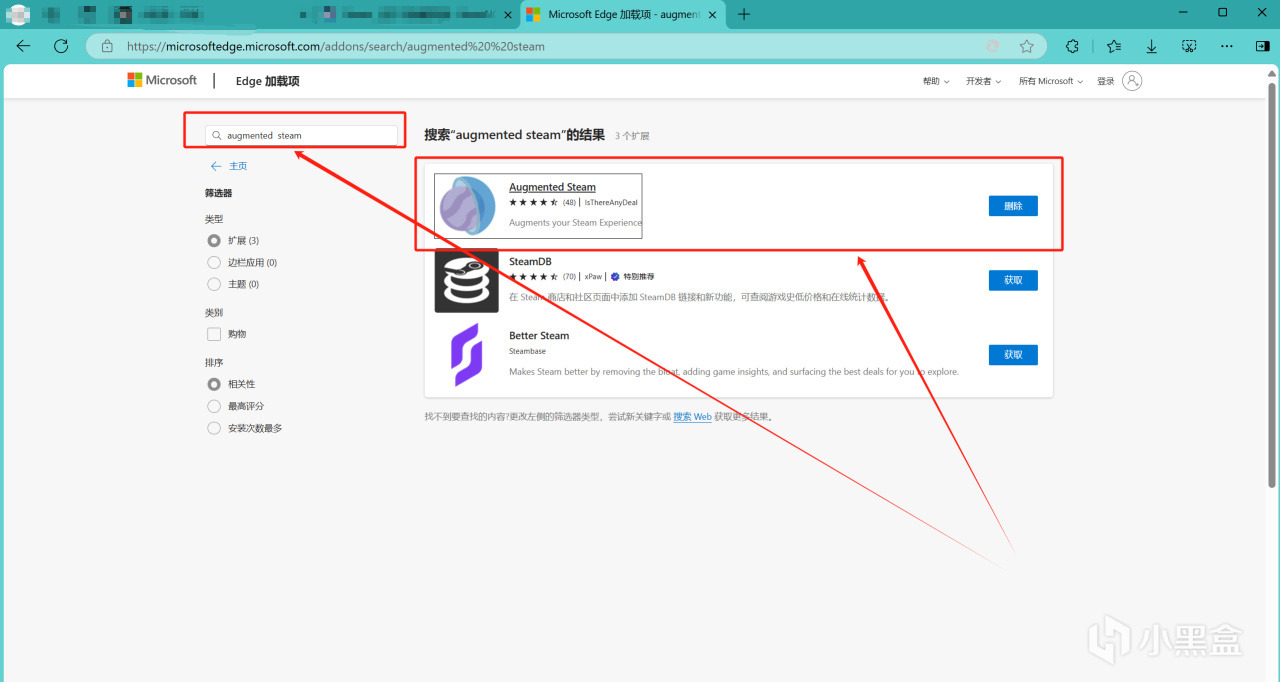 在里面搜索 augmented steam 点击 获取 之后,打开steam重新刷新页面就可以咯