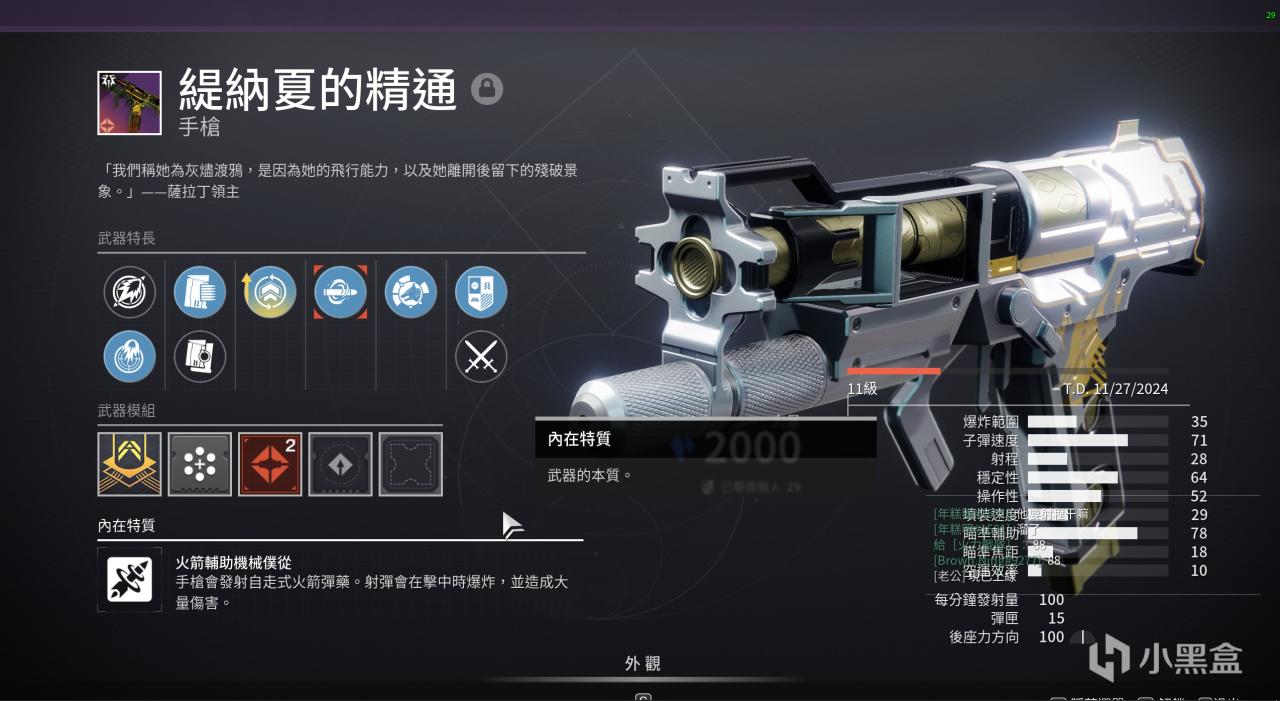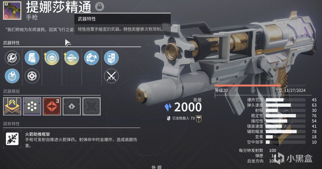 但需注意,并不是说这把武器有多强,只是因为这是唯一一把冰影属性的火箭框架手枪,而备一把(没有也没事,直接用苍白之心的锻造缚丝火箭手枪,更省事。主要是PVP打起来太shi了)