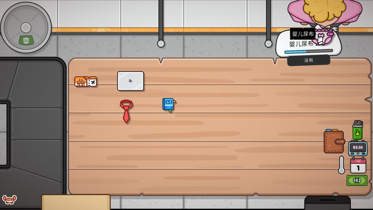 然后,玩家可以通过消耗将失物交还给失主赚得的小费来留下家用(随日期推进逐渐增加,3次未付钱则判定游戏失败,可以在游戏初期购买“法院命令”免去这份“责任”),购买一些升级项,降低游戏的整体难度,提升容错率,并让赚钱变得更加轻松。