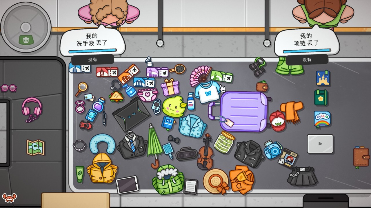 兴许是为了增加游戏的难度,制作组特意将部分同类但不同名的道具设计了类似的外观,让其在玩家手忙脚乱时负责添乱,比如植物手册、童话书和儿童读本,睡衣、衬衫和朵拉衬衫(原谅我完全不知道这是个什么东西),项链、珠宝首饰,手镯和手链等。不过,比较贴心的是,由于每种物品原则上只会同时存在一个,实际倒也不至于陷入在一堆“菀菀类卿”的错误选项中费劲巴力挑正确选项挑到眼花,然后硬吃惩罚的窘境。
