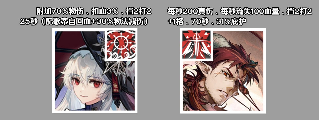 ③技能期间这俩干员的硬度在近战六星中是很高的一档了,赫德雷70秒利弊皆有,难以多次开启,归鲨25秒又有些短,不过归鲨有技力光环,配歌蒂时个人更喜欢归鲨③