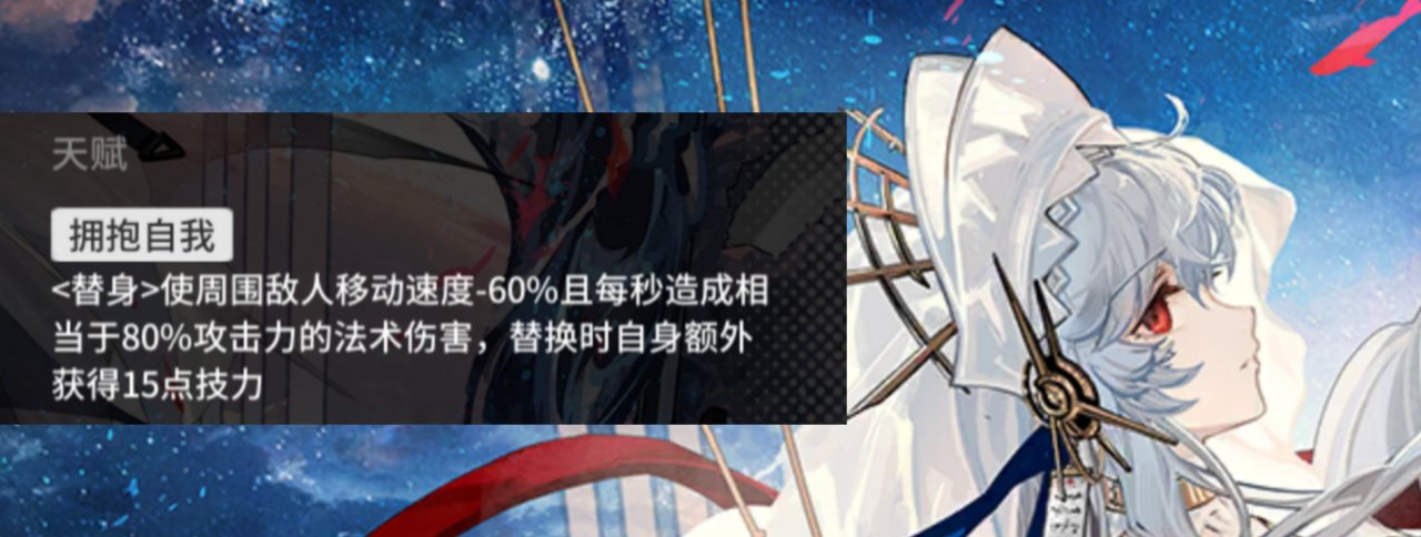 归鲨③技能配歌蒂时每秒回血量>扣血量,加上30%减伤,不易出替身,x模强化第一天赋的替身减速+法伤和③技能不太匹配,③技能是本体持续站场、清杂、打高甲的定位