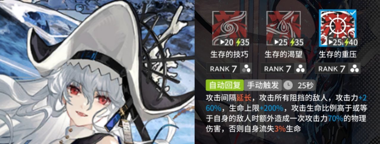 再搭配乌尔比安、斯卡蒂的天赋加成,归鲨③的攻击、血量数值会再突破,③技能在数值方面绝对没下毒,不过实用性对比②技能的20秒锁血来看会低一些,不算太常用吧