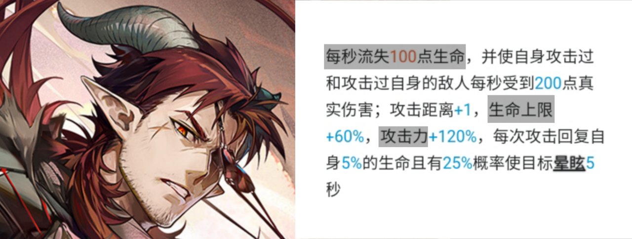 每次攻击回复最大血量的5%,该效果能受到x模特性20%治疗量提升的影响,也就是7188×1.6×0.05×1.2≈690的回血量,在持续攻击的情况下不怕每秒扣血
