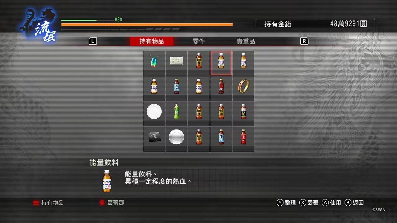 但除了这些以外,我在如龙极上也能看到一些放在今天也十分人性化的设定。比如当玩家在同一场战斗中如果连续战败两次,系统就会提示是否要将游戏难度暂时降为“easy”,在用降低后的难度打赢战斗以后,又会将难度自动更换为正常难度。不需要玩家再打开菜单更改一次。还有在支线任务收获道具时如果背包已经是满状态就可以将一个道具远程放入仓库中来腾出一个位置。