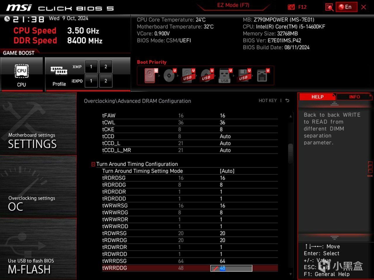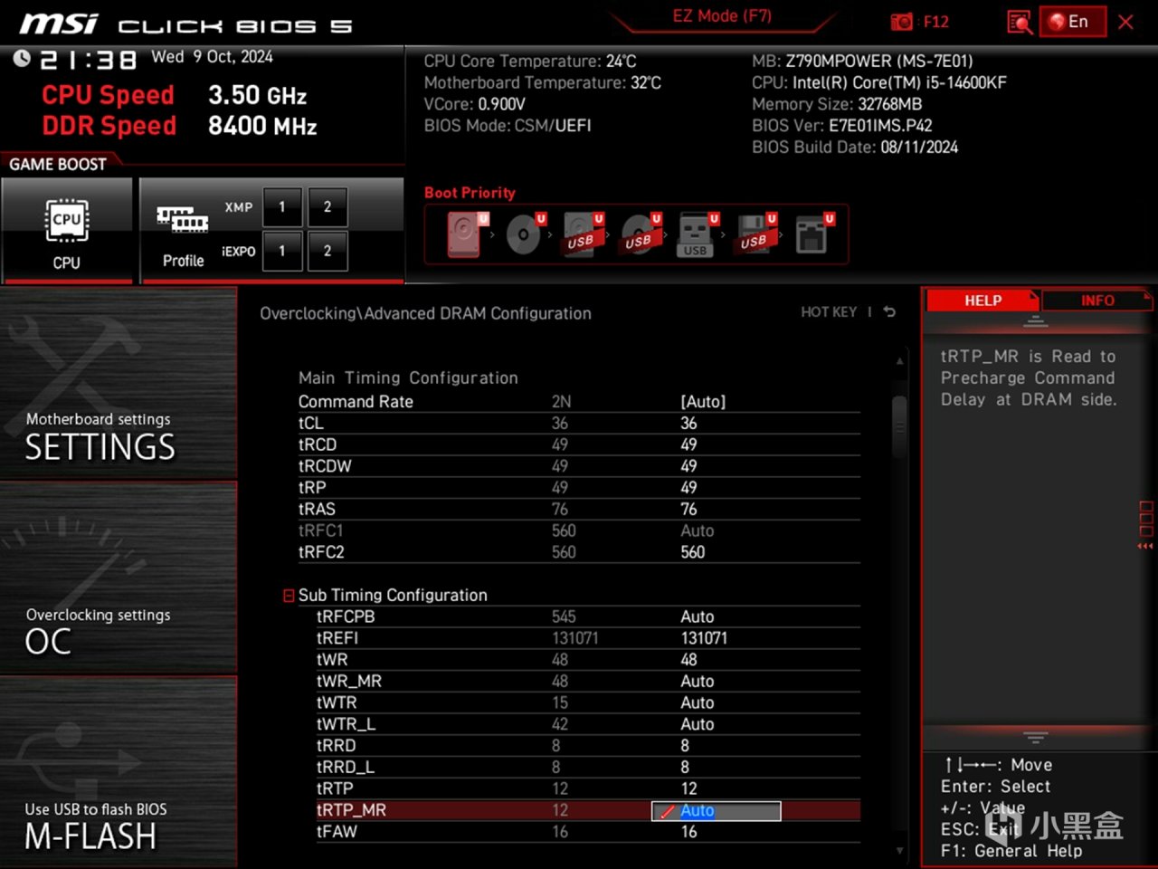 使用手上這套親民平臺:I5 14600KF和微星親民款的超頻主板Z790M POWER來測試手上現有的各款頻率的內存,看在開啓XMP內存超頻後的內存延遲對比。