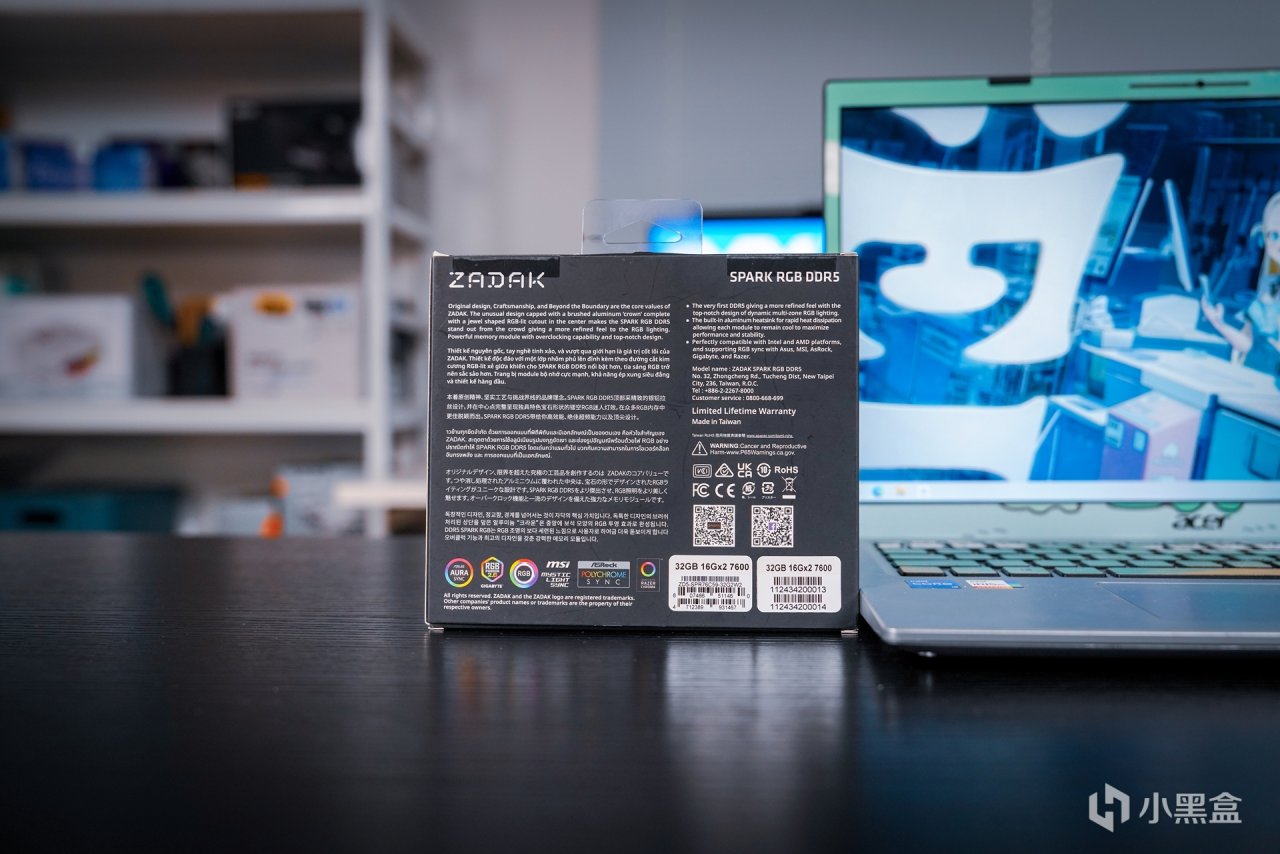 選擇頻率高的內存適合折騰的老玩家,而新手則推薦選擇比較主流的頻率爲最佳選擇。這次就以這套新上手來自宇瞻的新品DDR5 內存--ZADAK DDR5 7600 16G*2來看下這些主流的D5內存適配於什麼平臺上使用。先來看下這套內存的開箱以及外觀介紹。做爲存儲的老品牌,宇瞻、全何、oloy這幾家在國內屬於認知度並沒有那麼高(臺企存儲品牌)不同於其他幾家(臺企:芝奇/威剛/十銓)(美企:金士頓/海盜船)存儲廠牌在國內的知名那麼高。ZADAK SPARK 內存的包裝爲灰黑主色調,左上角銀色的ZADAK品牌系列,中間爲內存圖示,右下角爲其型號SPARK RGB DDR5。在包裝設計上真的不如其他品牌來的精緻,畢竟ZADAK系列也屬於宇瞻的高端內存系列,在包裝上對比其他品牌真的稍遜一籌了。
