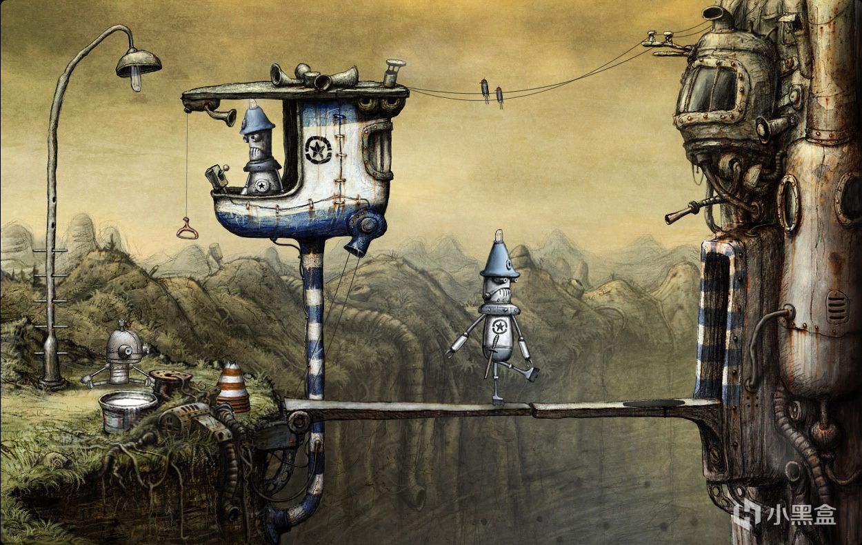 機械迷城(Machinarium)中每個角色都是機器人,包括我們的小英雄,他將爲了對付壞人並解救自己的女朋友展開了一系列的解謎,沒有多餘的對白,遊戲情節和線索皆靠細膩的動畫來表現。
