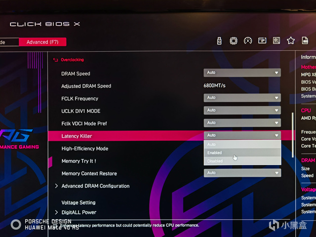 主板BIOS更新后,在高级模式的OC选项中就多出Latency Killer选项,点进去能进行打开或者关闭。